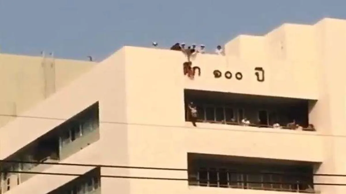 سقطت طفلة في الرابعة من عمرها، من سطح أحد الأبنية العالية في تايلاند، لكن العناية الالهية أنقذتها حين علقت ملابسها بشعار المستشفى المعلق على الواجهة الأمامية للمبنى.