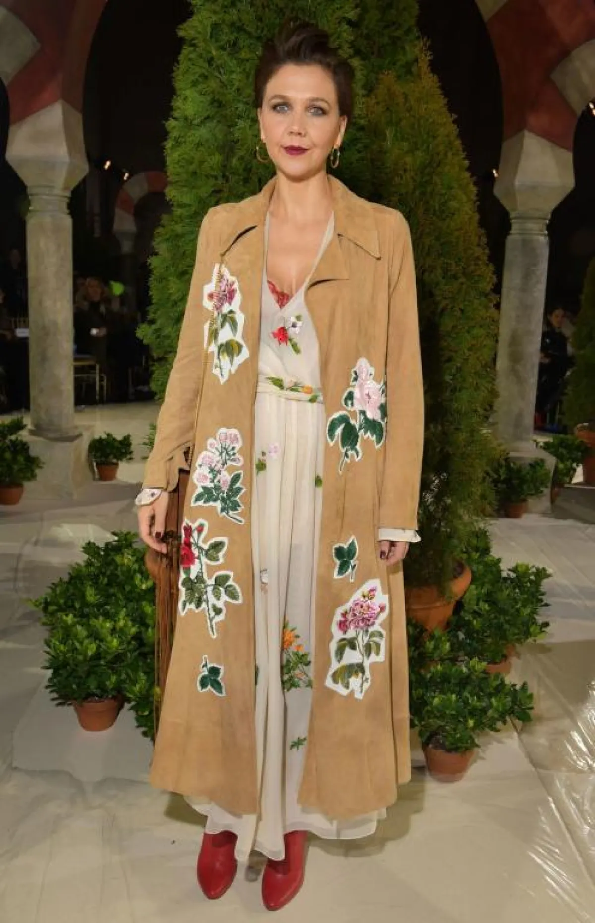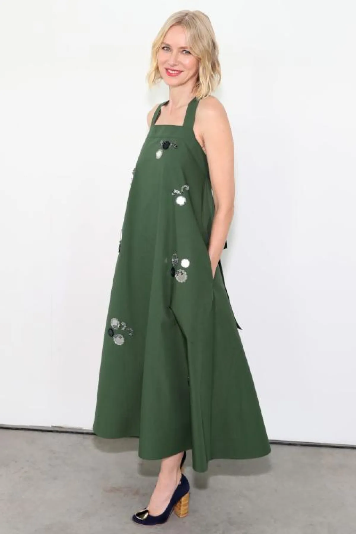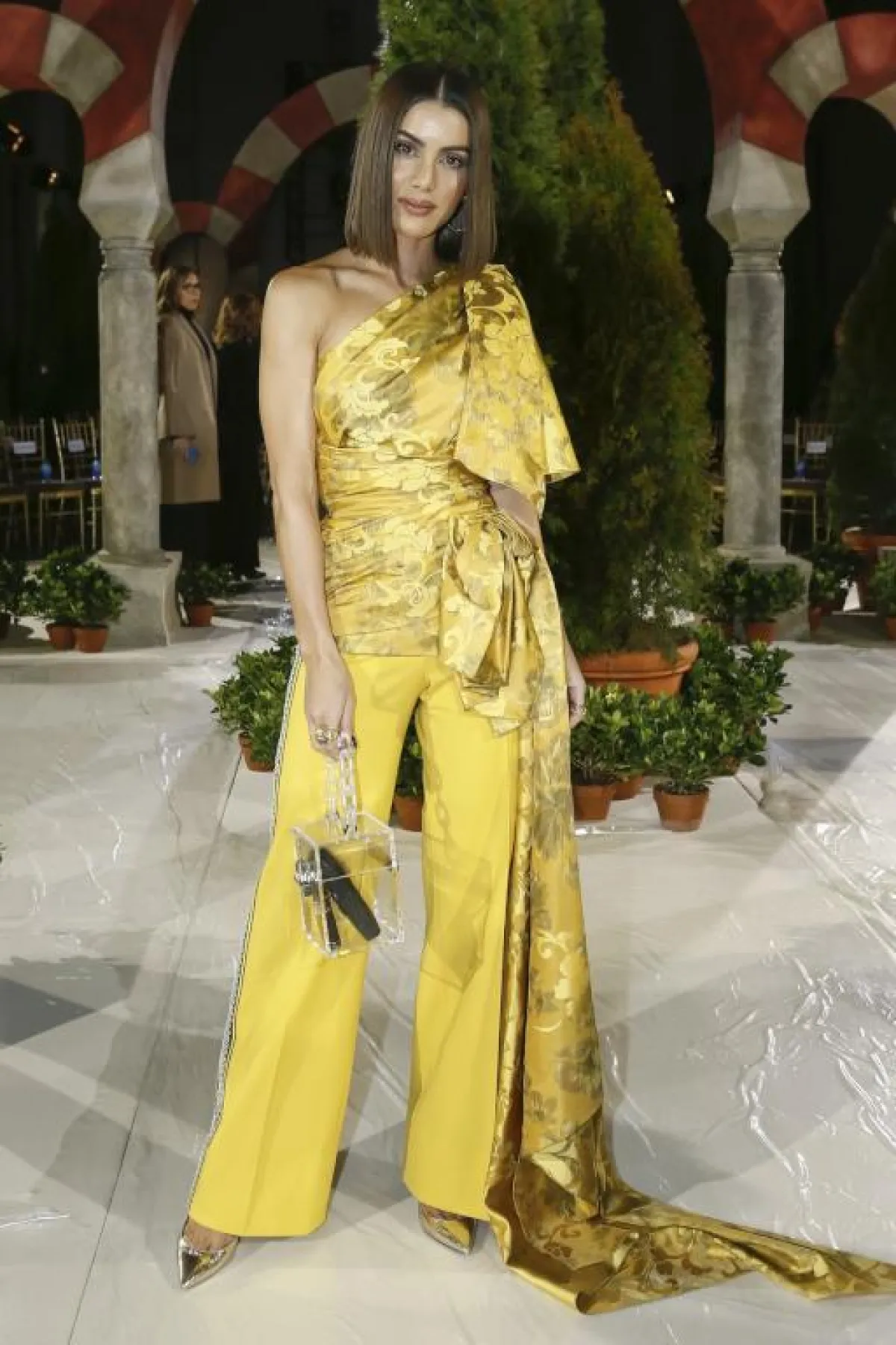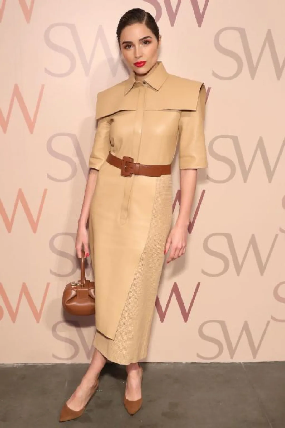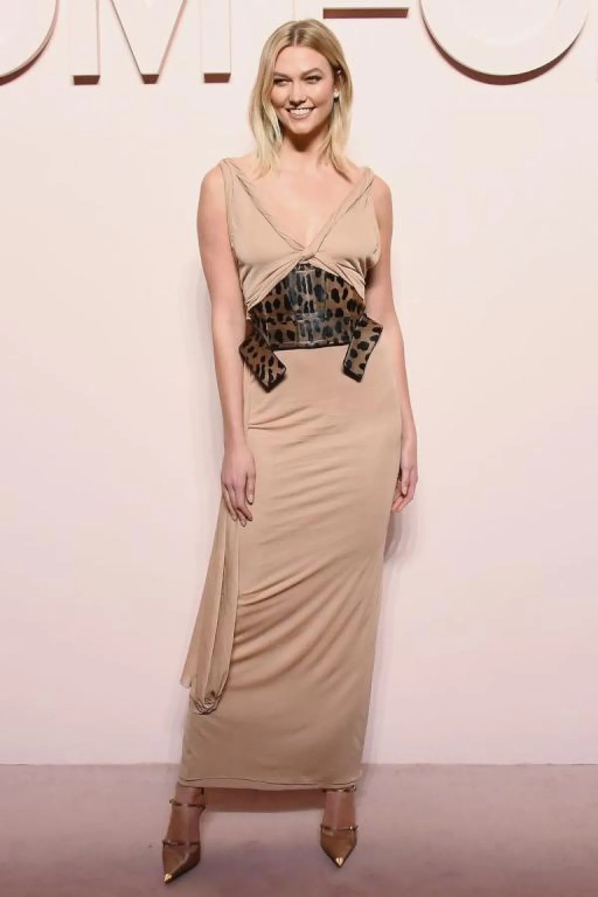 كارلي كلوس Karlie Kloss تألقت في عدد من عروض الأزياء هذا الموسم، ومن الاطلالات اللافتة كانت في عرض توم فورد Tom Ford، حيث اختارت فستان ماكسي باللون البيج، وزيّنته بحزام كورسيه عريض بنقشة النمر، وأكملت اللوك بحذاء بكعب عالٍ باللون الذهبي.
