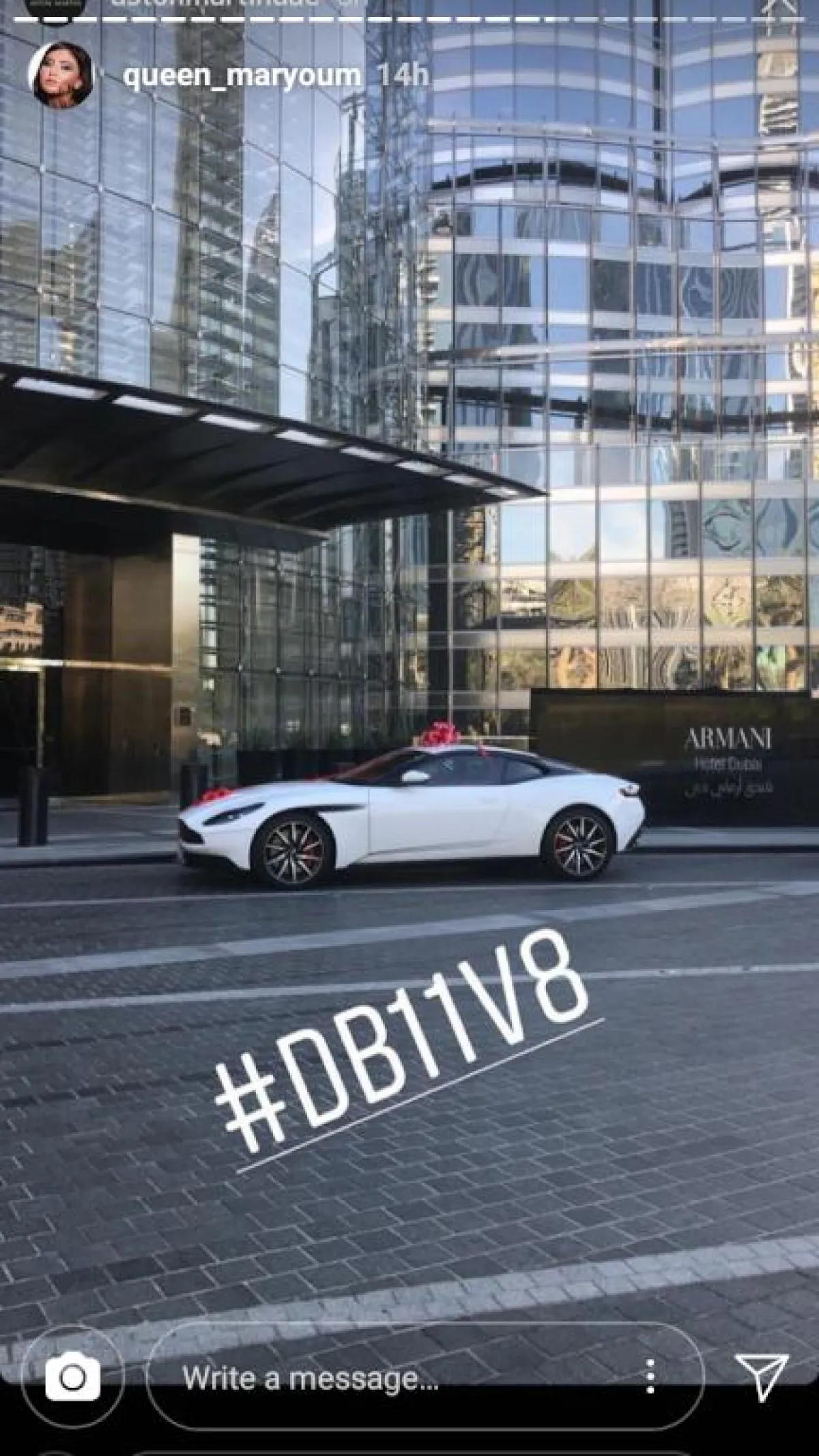 وكانت مريم حسين قد نشرت فيديو وصورًا لسيارة من طراز "آستون مارتن فانكويس"، من دون أن توضح من أهداها إياها، وعلقت على إحدى الصور: "لقد وصل عيد الحب مع المفاجأة الكبرى".