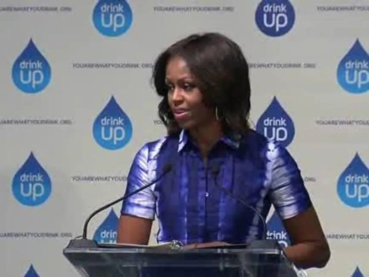 دعت السيدة الأمريكيّة الأولى ميشيل أوباما المعروفة بمكافحتها البدانة الأمريكيين إلى شرب مزيد من الماء، في إطار حملة تحثّهم فيها على "شرب كوب إضافيّ من الماء يوميّاً".