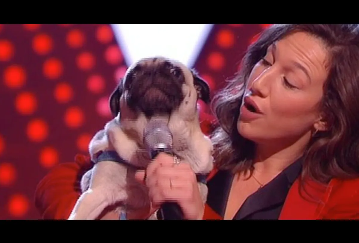 استحوذ كلب صغير على الأنظار بينما كان يغني لأول مرة في برنامج The Voice»» حيث كان أداؤه أمام الحكام المشهورين. وبحسب موقع «ميرور» ترك الكلب الحكام في حالة ذهول عندما سلمت المطربة المتنافسة في المسابقة «مارينا سيميوني» المايك إلى كلبها، الذي قام بأداء قوي، مما ترك الحكام في حالة ذهول وإعجاب بالكلب وجعل أحد المحكمين يطلب منها أن تجعل الكلب اللطيف يغني أكثر.
