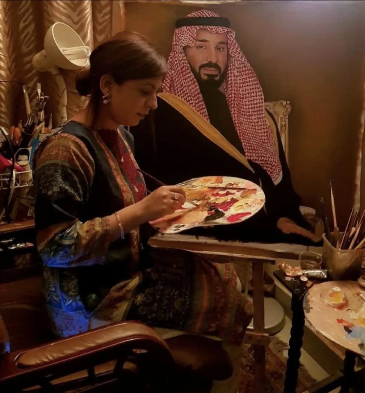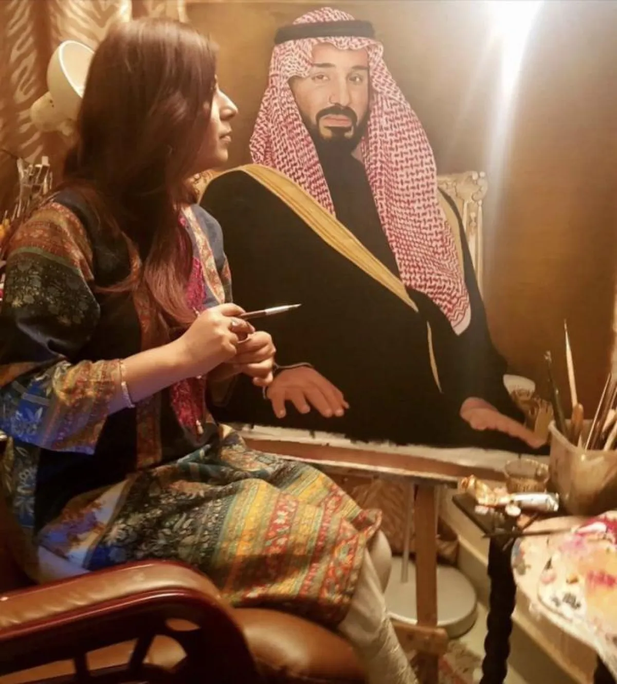 وقد قامت الرسامة الباكستانية "رابعة ذاكر" بهذه المناسبة برسم صورة بورتريه لولي العهد استغرقت مدة تنفيذها 7 أيام.