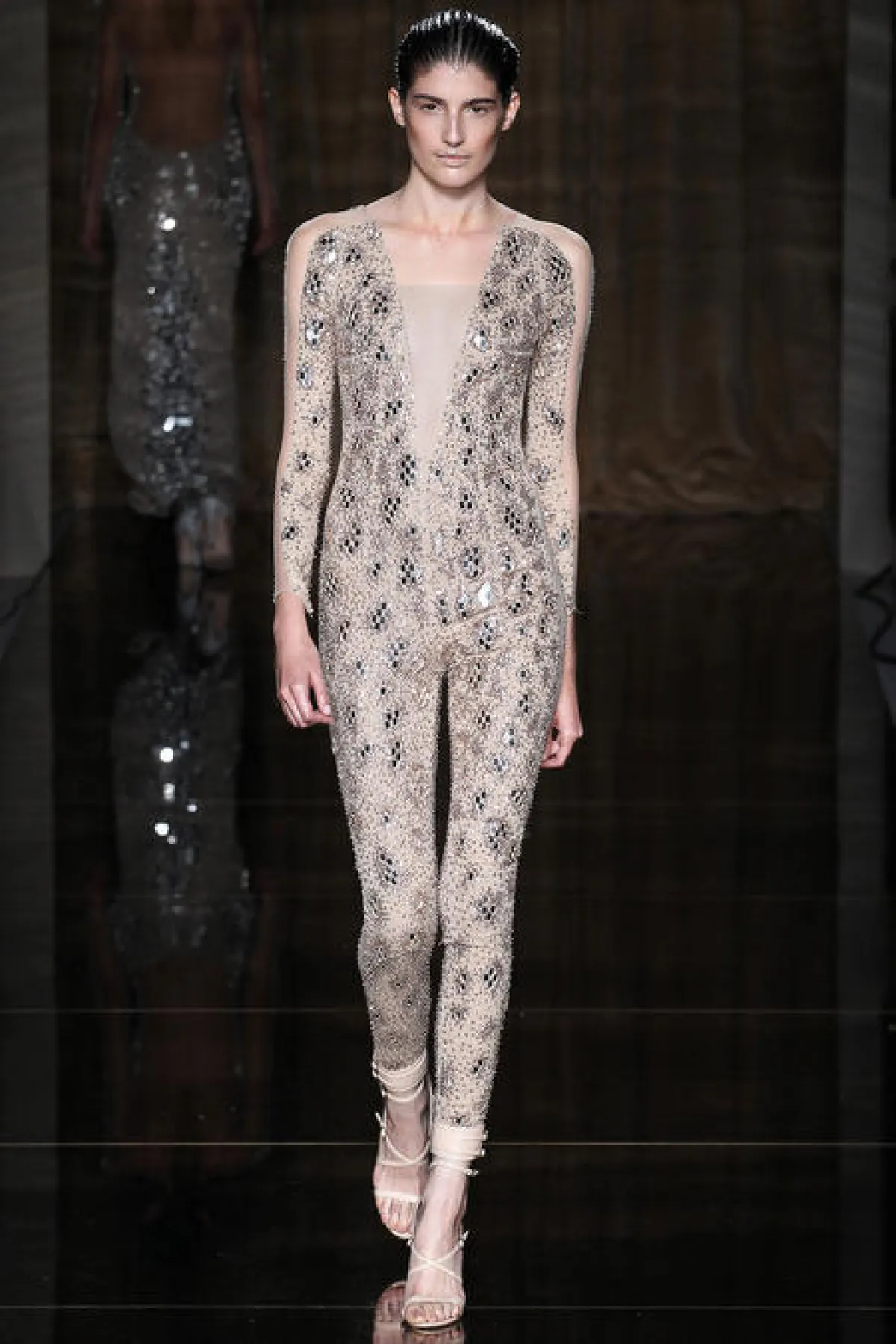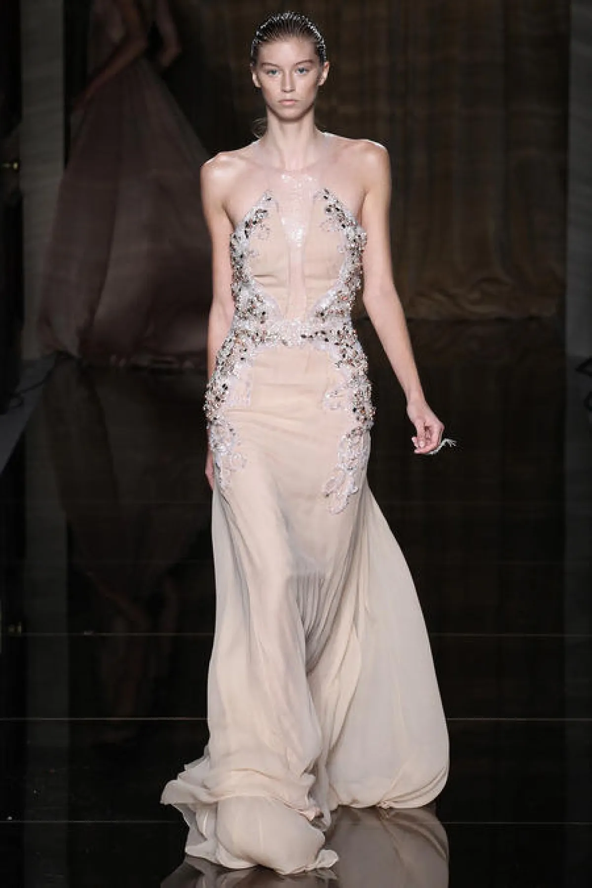 عرض المصمم مجموعة جميلة من فساتين السهرة التي تميَّزت بتصاميمها الأنيقة وتفاصيلها الأخَّاذة، أمَّا بالنِّسبة للألوان التي ظهرت في هذه المجموعة فقد اختار المصمم مجموعة من الألوان الحياديَّة وألوان الميتاليك كالفضيّ والذهبيّ.