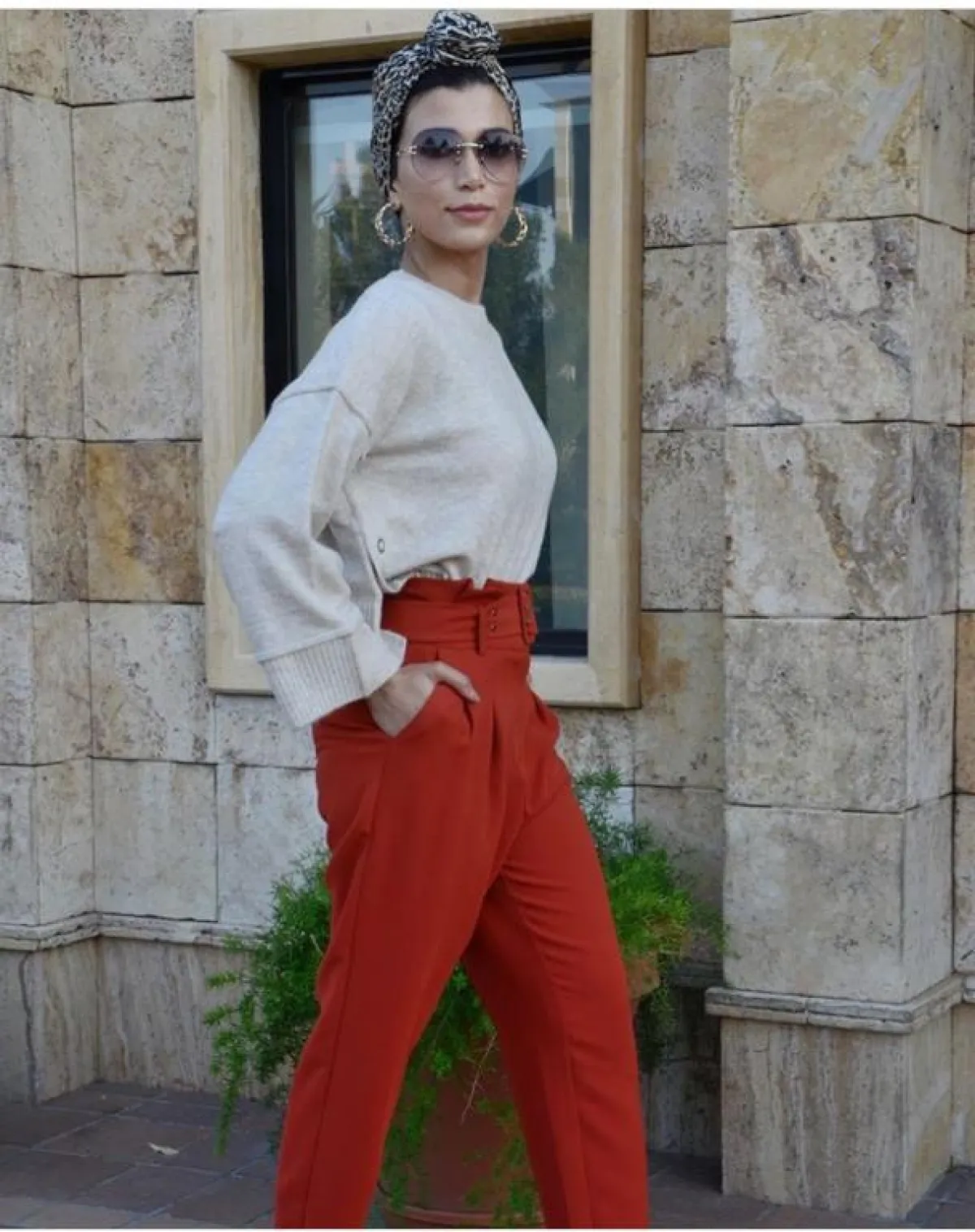 كما تختار هبة التوربان المطبعة بالرسومات العصرية، كرسومات الحيوانات البرية، لاطلالة كاجوال مع الكنزة الصوف، والبنطلون عالي الخصر، للوك شبابي ننصح به الصبايا المراهقات، لاطلالة أصغر سنًّا، بخاصة مع أقراط الأذن الدائرية.