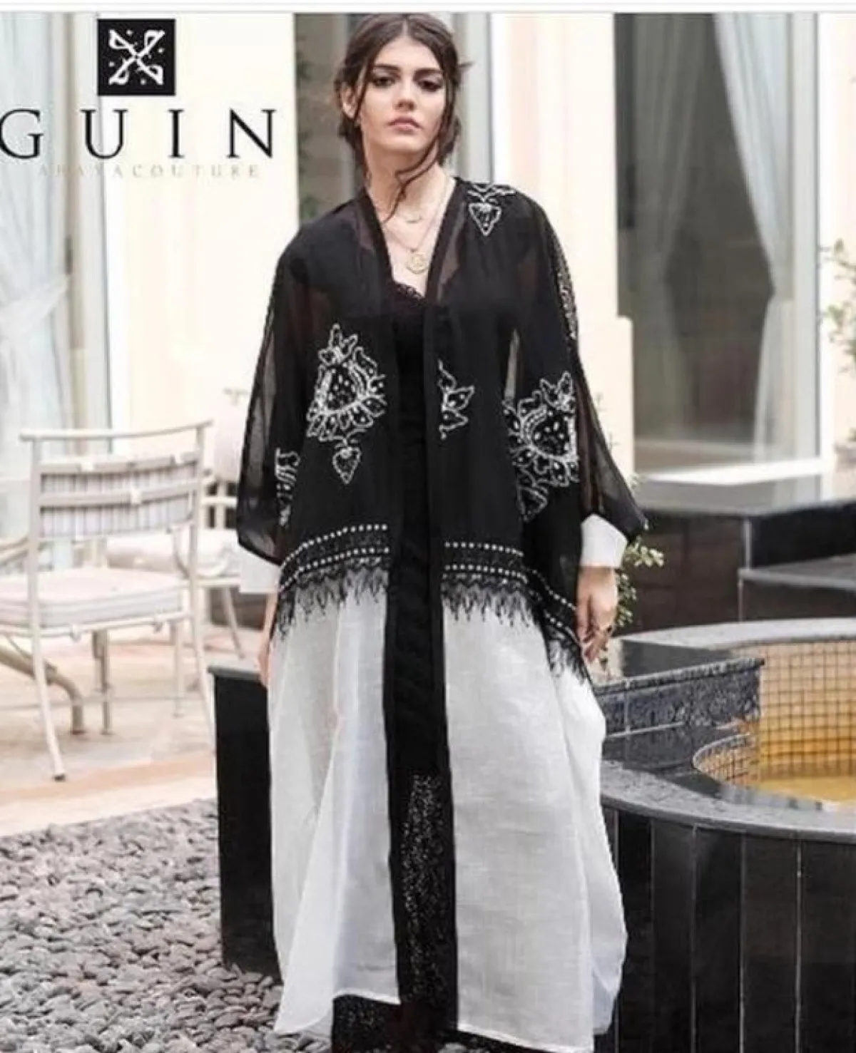 أعجبنا اللعب بدرجتي الأبيض والأسود في عبايات جون Guin ، مع لمسة بسيطة من الدانتيل الناعمة التي تفصل بين اللونين، وهذا الموديل يجمع بين الكاجوال والعصرية، يمكنكِ ارتداؤها بالنهار، أو أثناء الذهاب إلى العمل مع التنانير السوداء، والقمصان الكلاسيكية.