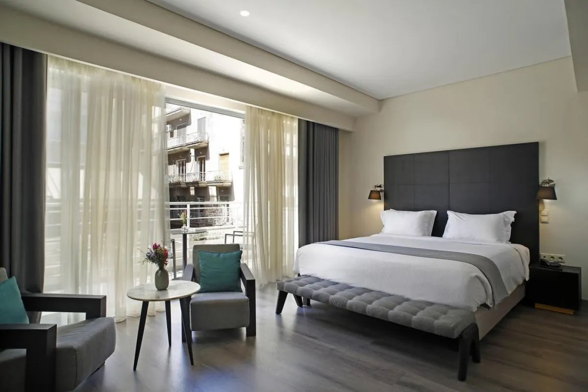 يقع الفندق على بعد 10 دقائق سيرًا على الأقدام من الأكروبوليس وPlaka، بجانب منطقة Ermou التجارية. ويوفِّر سهولة الوصول إلى محطَّات المترو والترام الرئيسة، في حين تقع الحافلة السريعة المطار على بعد 50 مترًا من الفندق.
