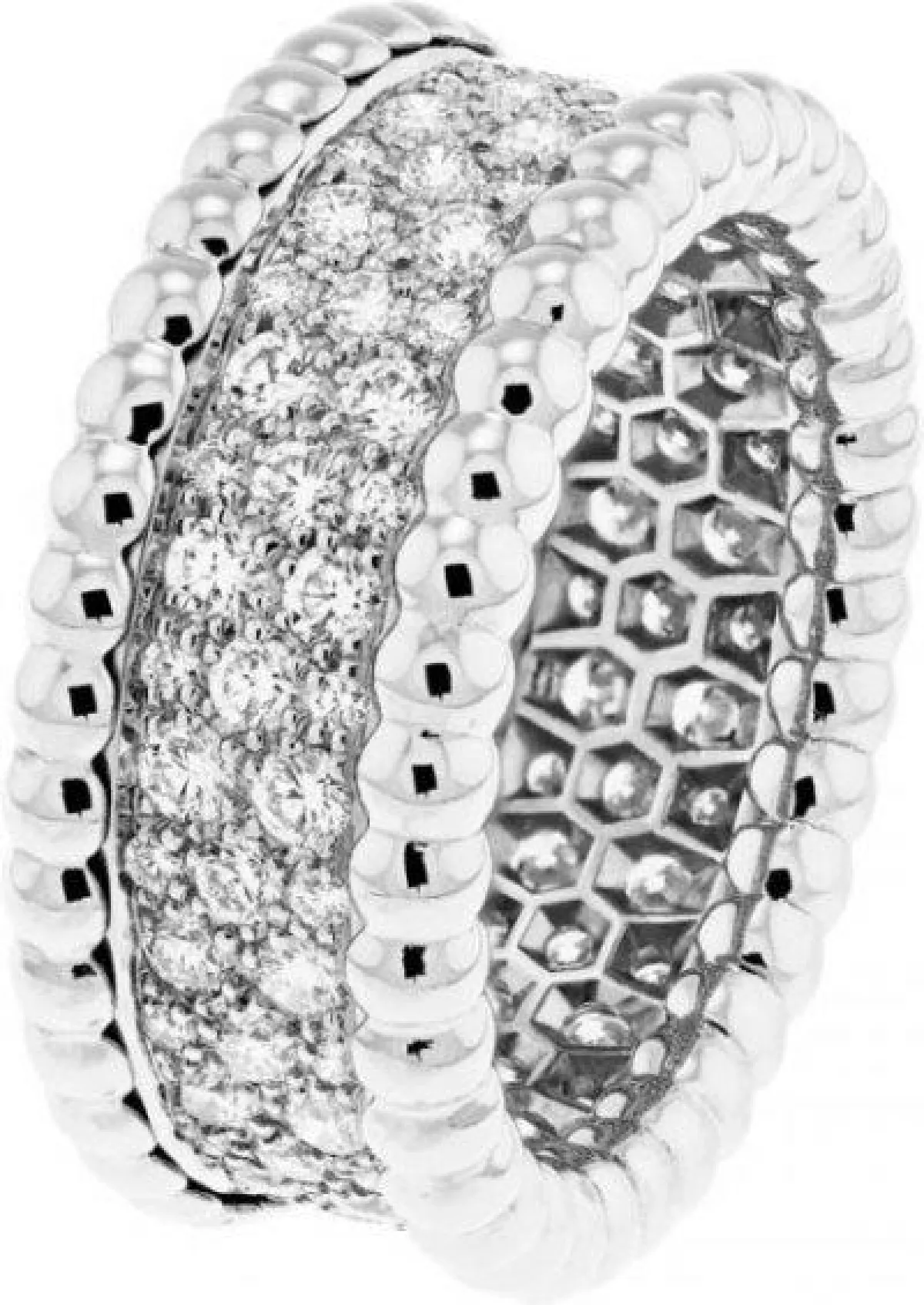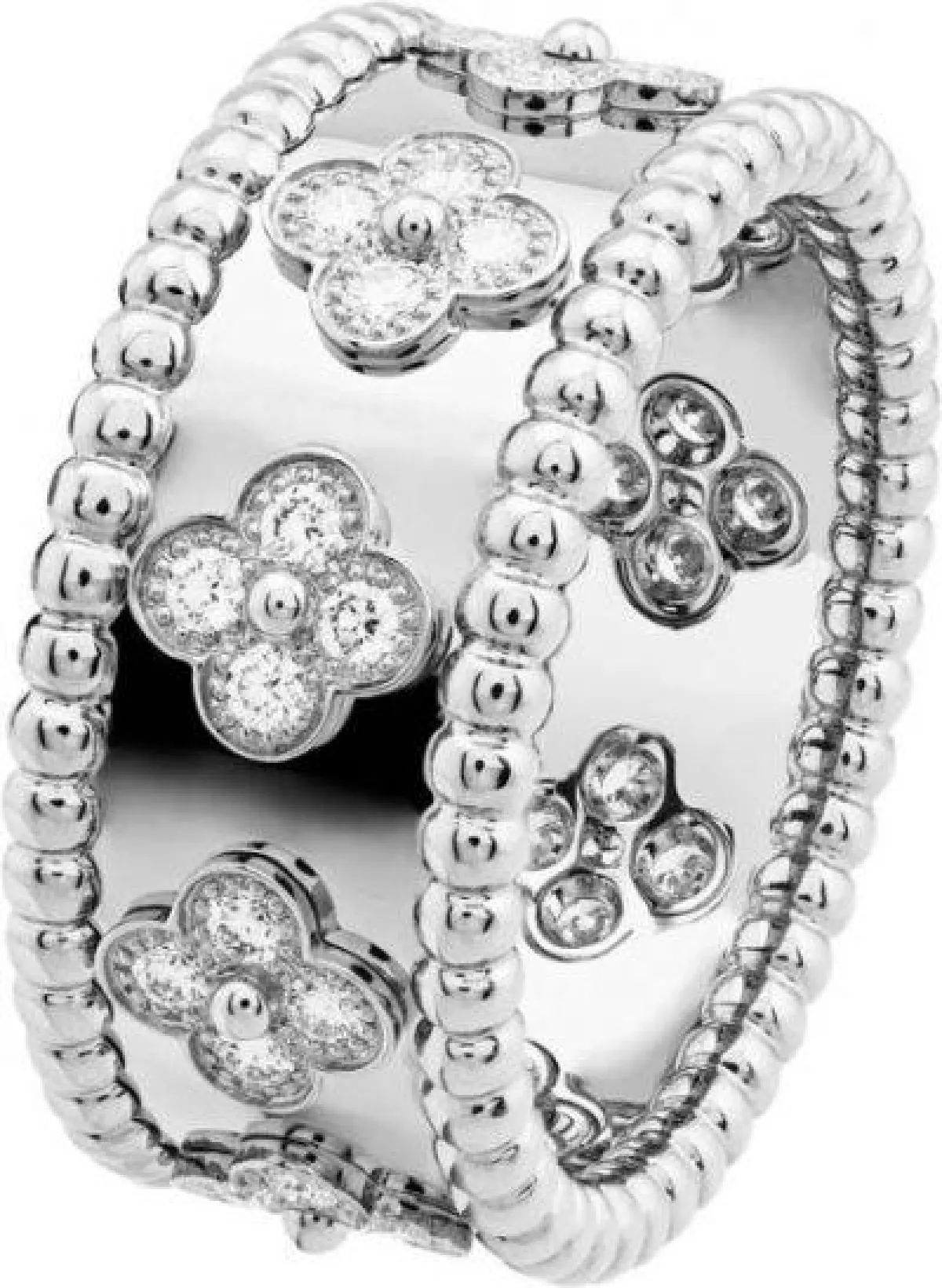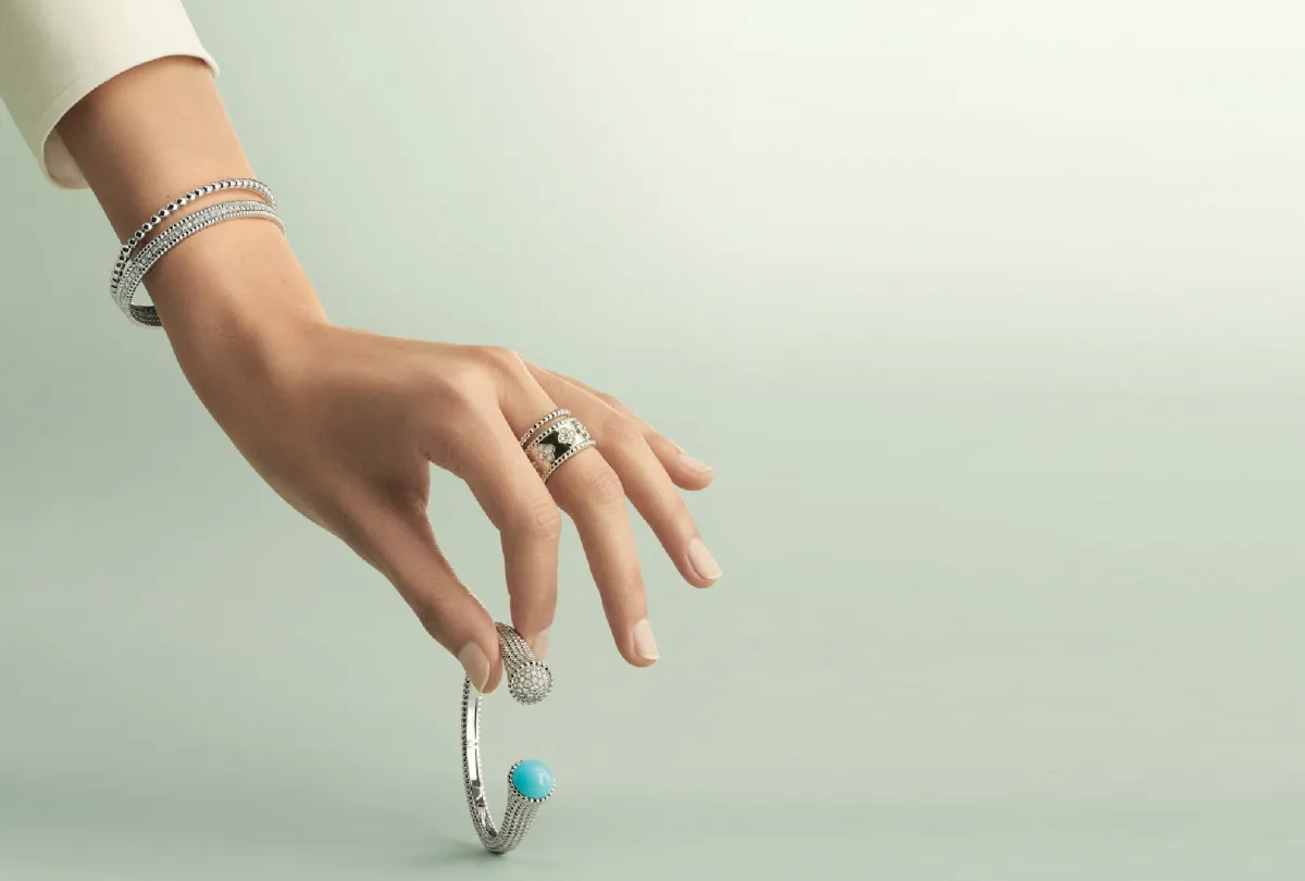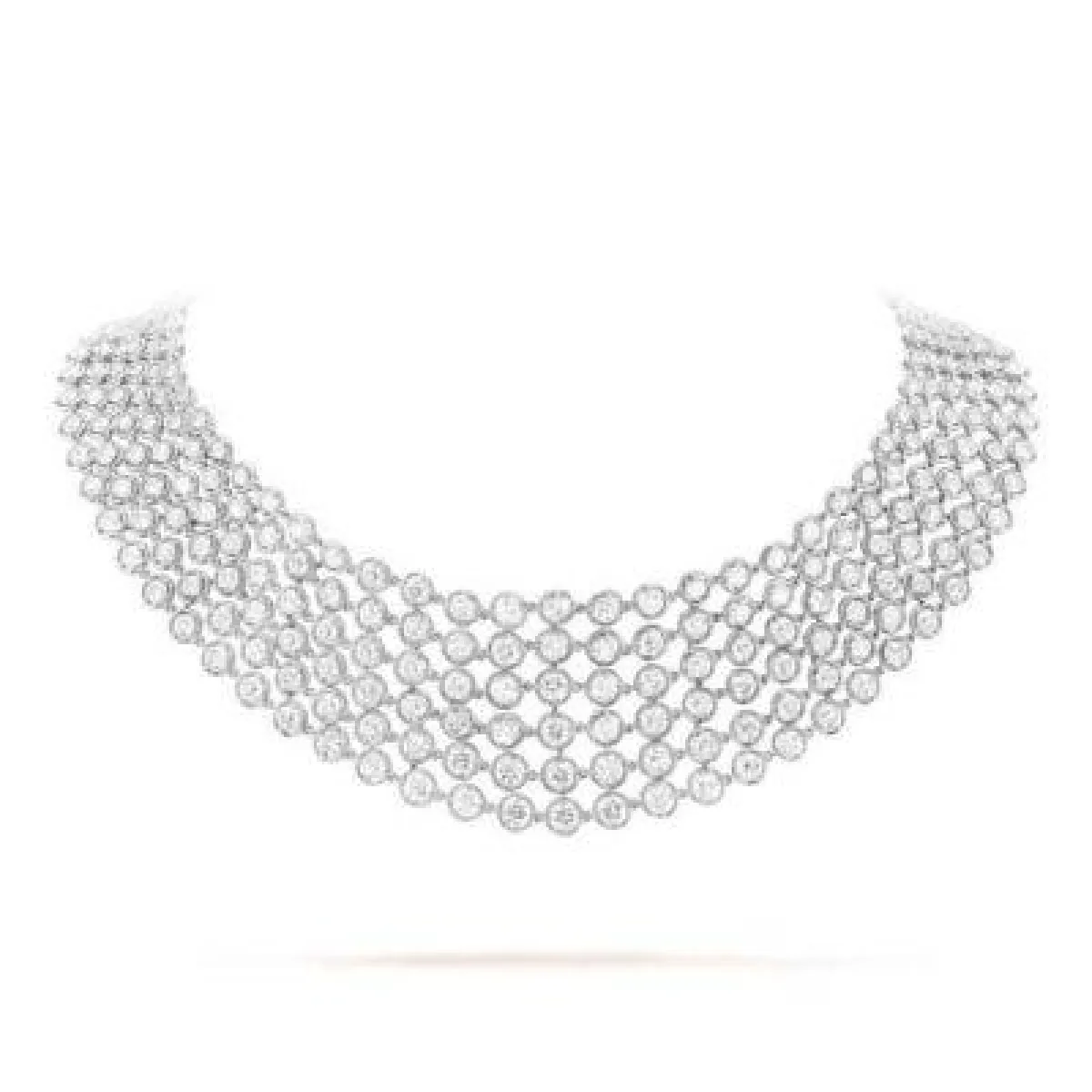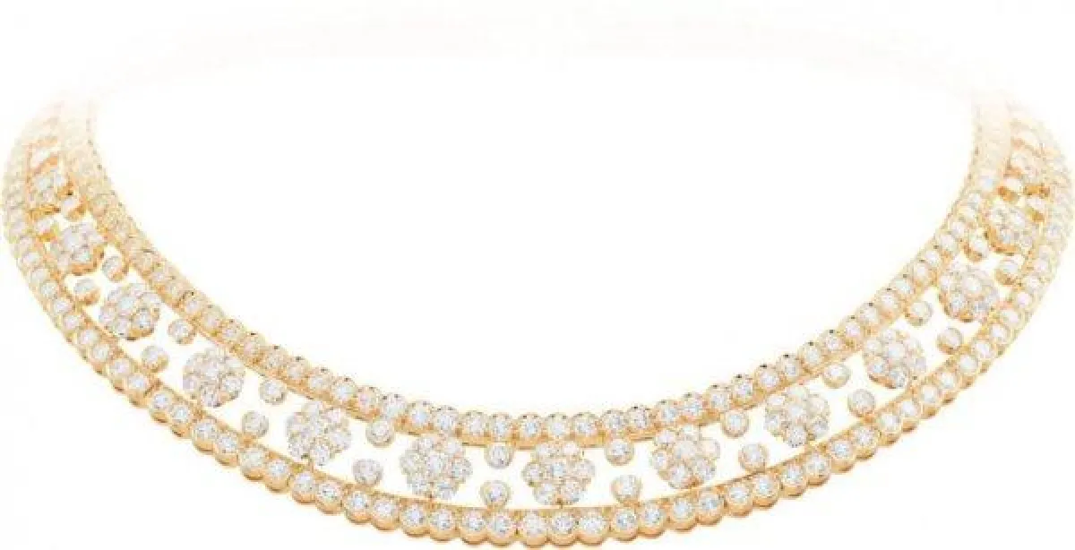 من القطع الرئيسية المثيرة للاهتمام نجد مجموعة بيرليه التي اشتهرت بروحها المرحة بسلسلة من الإبداعات التي تشارك التلاعب نفسه بين الذهب الأبيض والماس. من مجموعة المجوهرات الراقية، سيتم عرض عقد زيب وهو أيقونة حقيقية للدار استلهم من الأزياء ذات