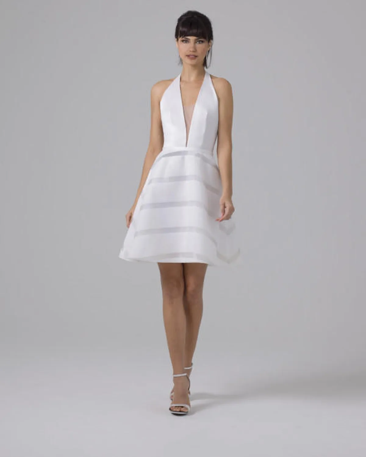 كما قدمت بعض الماركات فساتين زفاف High Low القصيرة من الأمام والطويلة من الخلف بتصميم منفوش، مثل فساتين برونوفياس Pronovias، وSuzanne Neville.