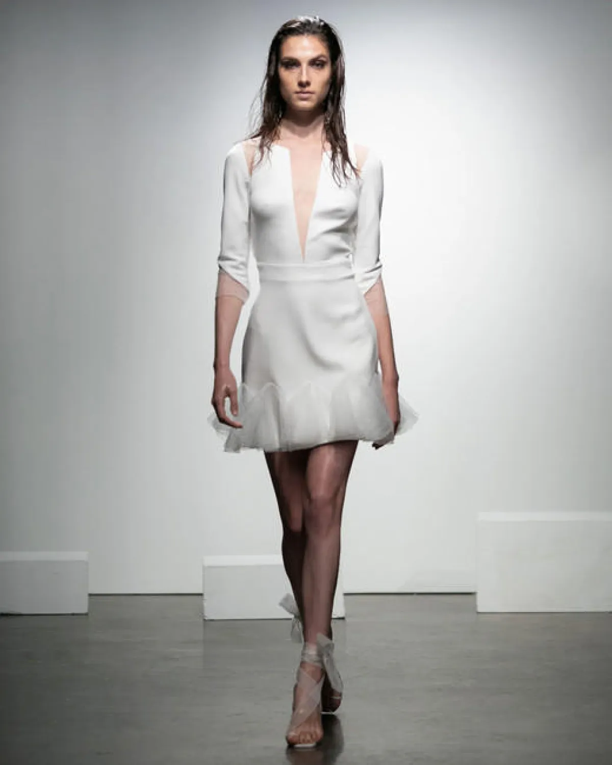 كما قدمت بعض الماركات فساتين زفاف قصيرة بأكمام قصيرة مثل فساتين Mira Zwillinger، وViktor & Rolf.