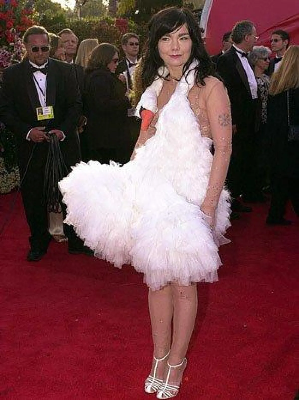 اختارت “أوما ثورمان” Uma Thurman اطلالة غير اعتيادية في حفل الأوسكار عام 2004، حيث قررت أن تحيي تراثها وجذورها البفارية من خلال اختيار زيّ تقليدي بدا وكأنه زيّ تنكّري، باللون الأبيض وله حزام أزرق على الخصر، وهذه كانت أحد أسوأ اطلالاتها على السجادة الحمراء.
