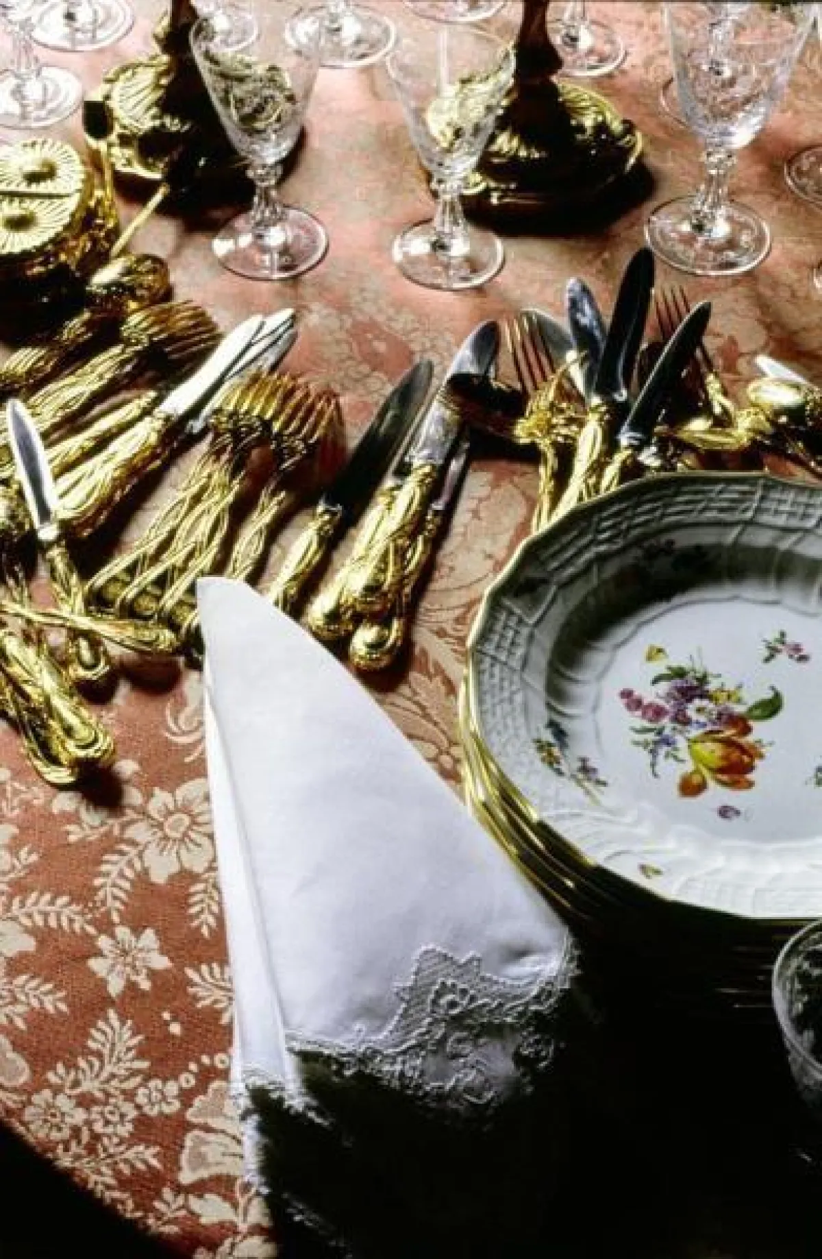 تبدو غرفة تناول الطعام وكأنها خرجت من أحد أفلام القرن الثامن عشر فعلاً، مع جدران مزخرفة بلون ذهبي، ثريات، مرآة كبيرة، طاولة طعام بحجم كبير تتسع لـ 8 أشخاص كأقل حد، إضافة للكثير من اللوحات الفنية التي أغنت زوايا الغرفة.