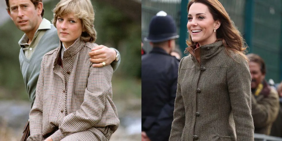 اعتمدت الأميرة ديانا سترة من التويد خلال شهر العسل في اسكتلندا في أغسطس 1981 ؛ أما كيت فاعادت نفس الصيحة بـ سترة أنيقة من التويد أيضاً خلال ظهورها في حديقة King Henry Walk في يناير 2019.