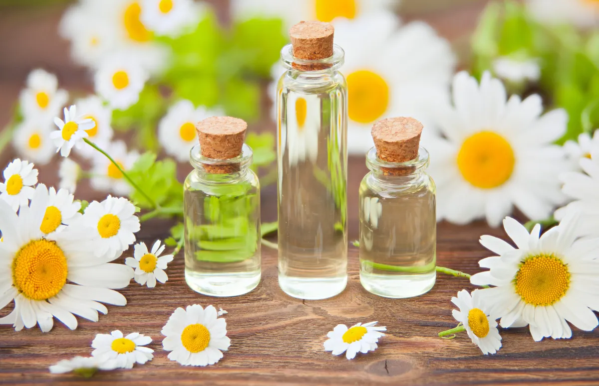 طريقة الاستخدام: يمكن إضافة 3 قطرات من البابونج الألماني إلى زيت جوز الهند، ووضعه على قيعان القدم كل ليلة قبل النوم.