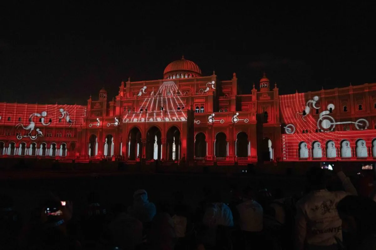 انطلق بعدها عرض مهرجان الأضواء الذي جسد من خلال لوحاته الفنية مسيرة دولة الإمارات بشكل عام وإمارة الشارقة بشكل خاص التاريخية والتراثية والثقافية والتعليمية والاجتماعية والرياضية.