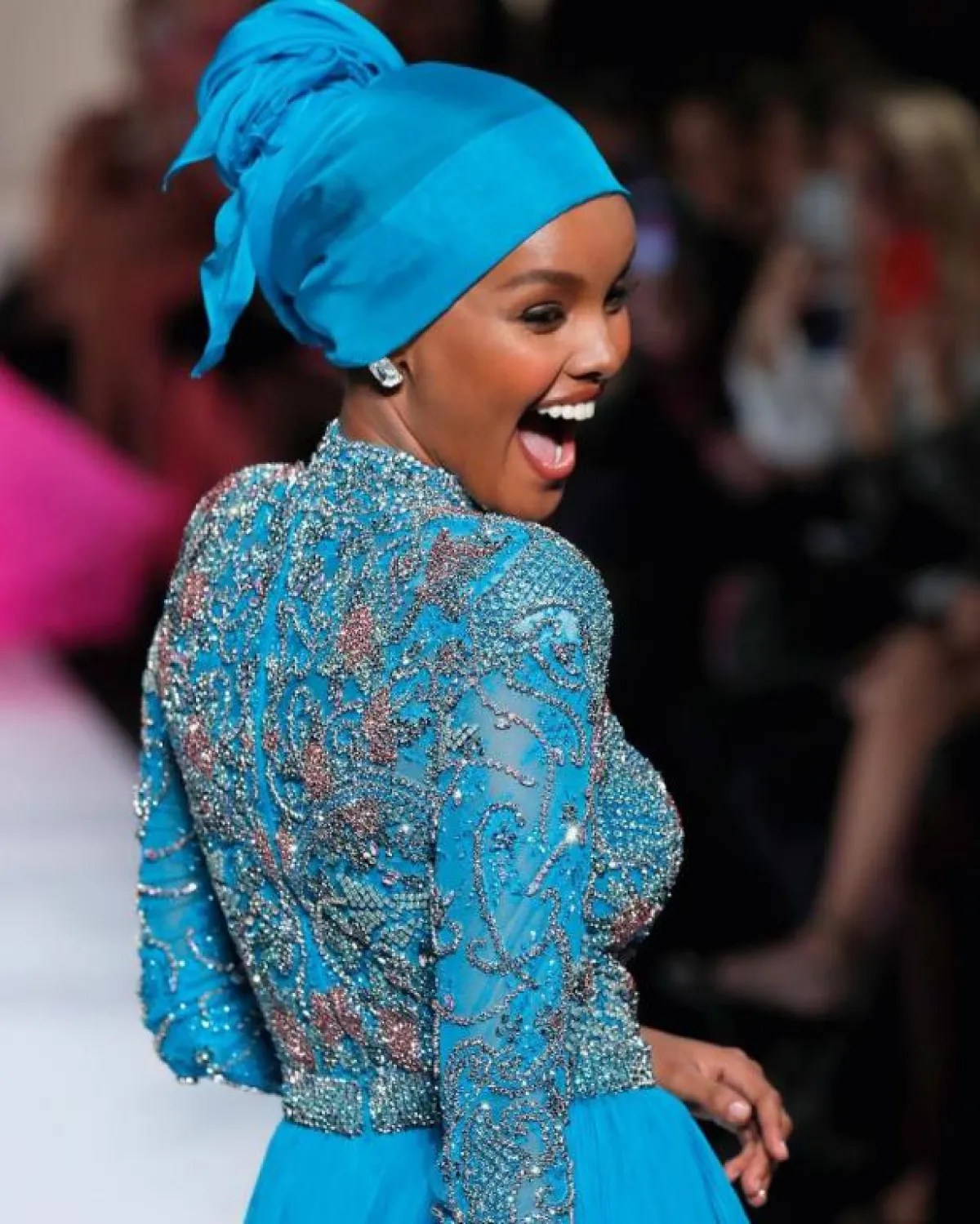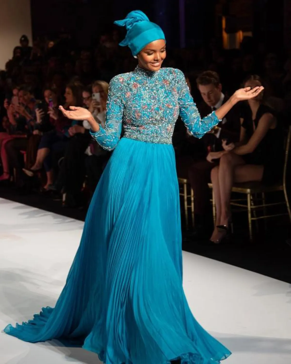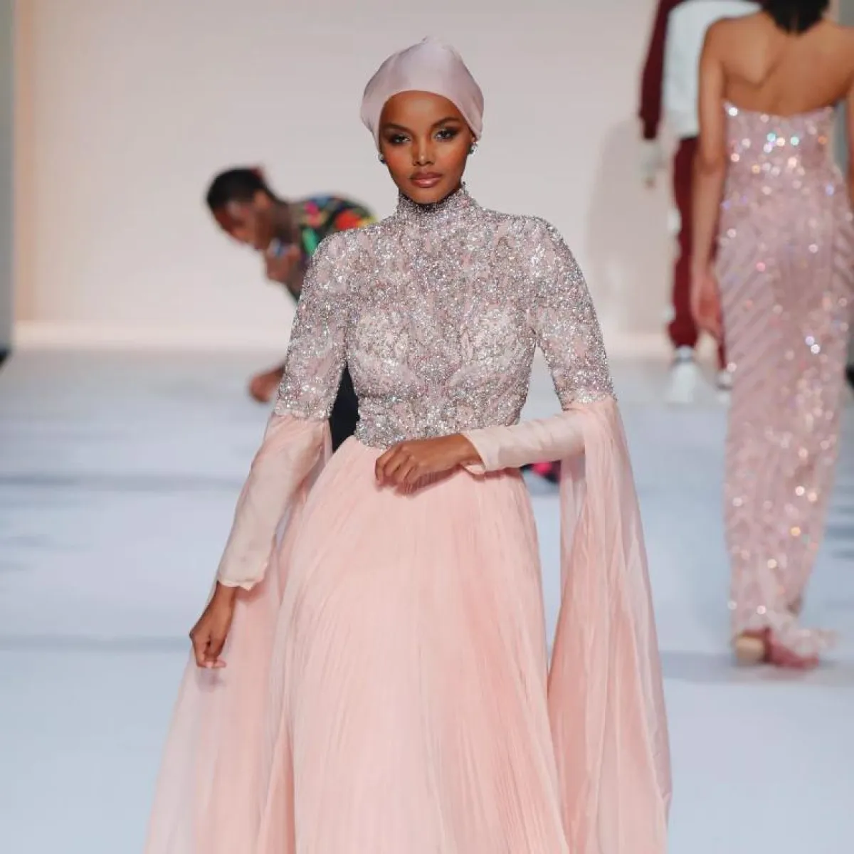 تعدّ عارضة الأزياء الأمريكية الصومالية حليمة أيدن، أول عارضة محجبة تسير على ممشى عروض الأزياء العالمية، وأصبحت مشاركاتها في أسابيع الموضة متكررة وأساسية.