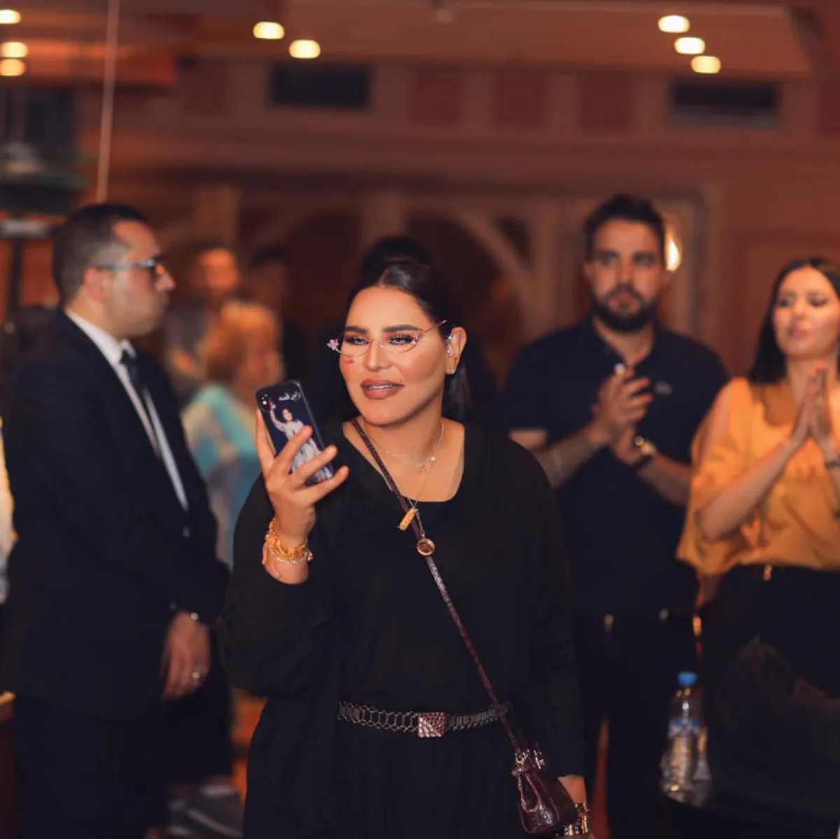 خلال أحد الأعراس التي أحيتها أحلام في الفترة السابقة، اعتمدت فستانًا أسود أنيقًا بتوقيع دار الأزياء الراقية ديور Dior، صُمّم الفستان من الدانتيل المترف، مع تنورة ميدي منفوشة بكسرات متتالية، وزينت التصميم بحزام أسود عريض بمشبك معدني على شكل شعار الدار الراقية.
