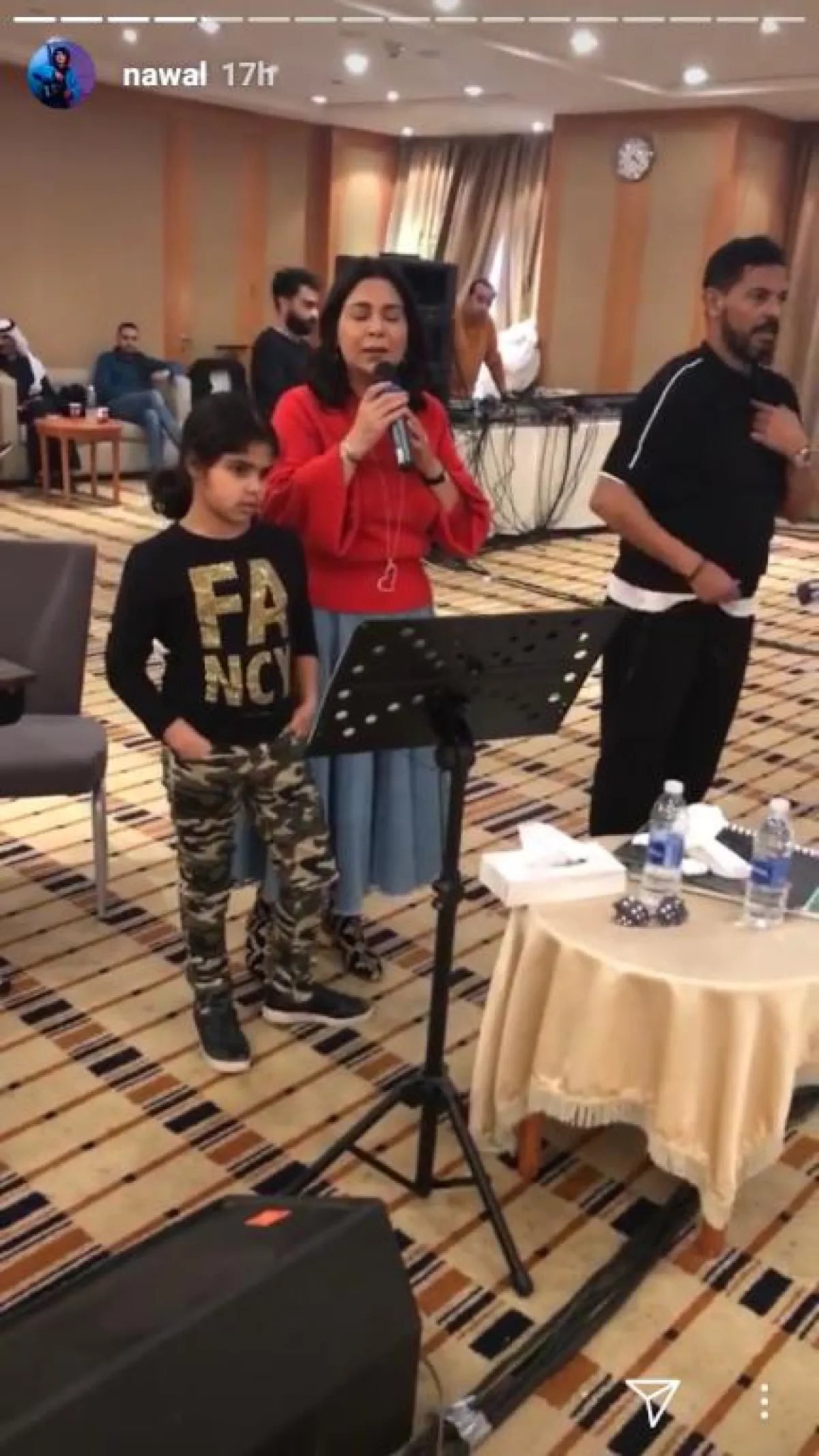 وظهرت مع نوال الكويتية إبنتها حنين كما ظهر زوجها الملحن مشعل العروج وهو يغني.