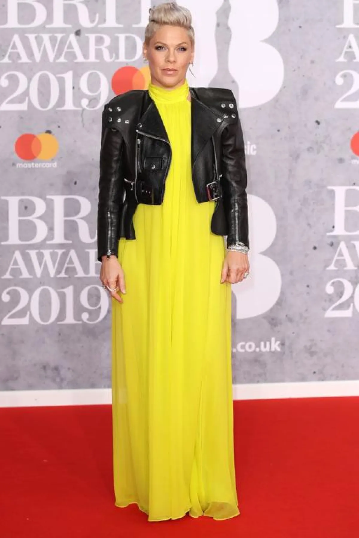 على ما يبدو أنّ النجمة الشهير “بينك” Pink علقت في الزمن في حقبة التسعينيات، والاطلالة التي اختارتها لحفل الـ"بريت Brit" مساء أمس، أكبر دليل على ذلك، فقد اختارت فستانًا من الموسلين باللون الأصفر، مع جاكيت قصير من الجلد الأسود، وقد رغبت من خلال هذه اللوك أن تُظهر موقف كونها تعتبر نفسها من مغني الروك، لكنها فشلت في ذلك، حيث بدا اللوك رخيصًا ولا يمت للأناقة بصلة.
