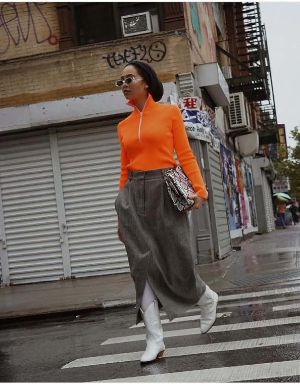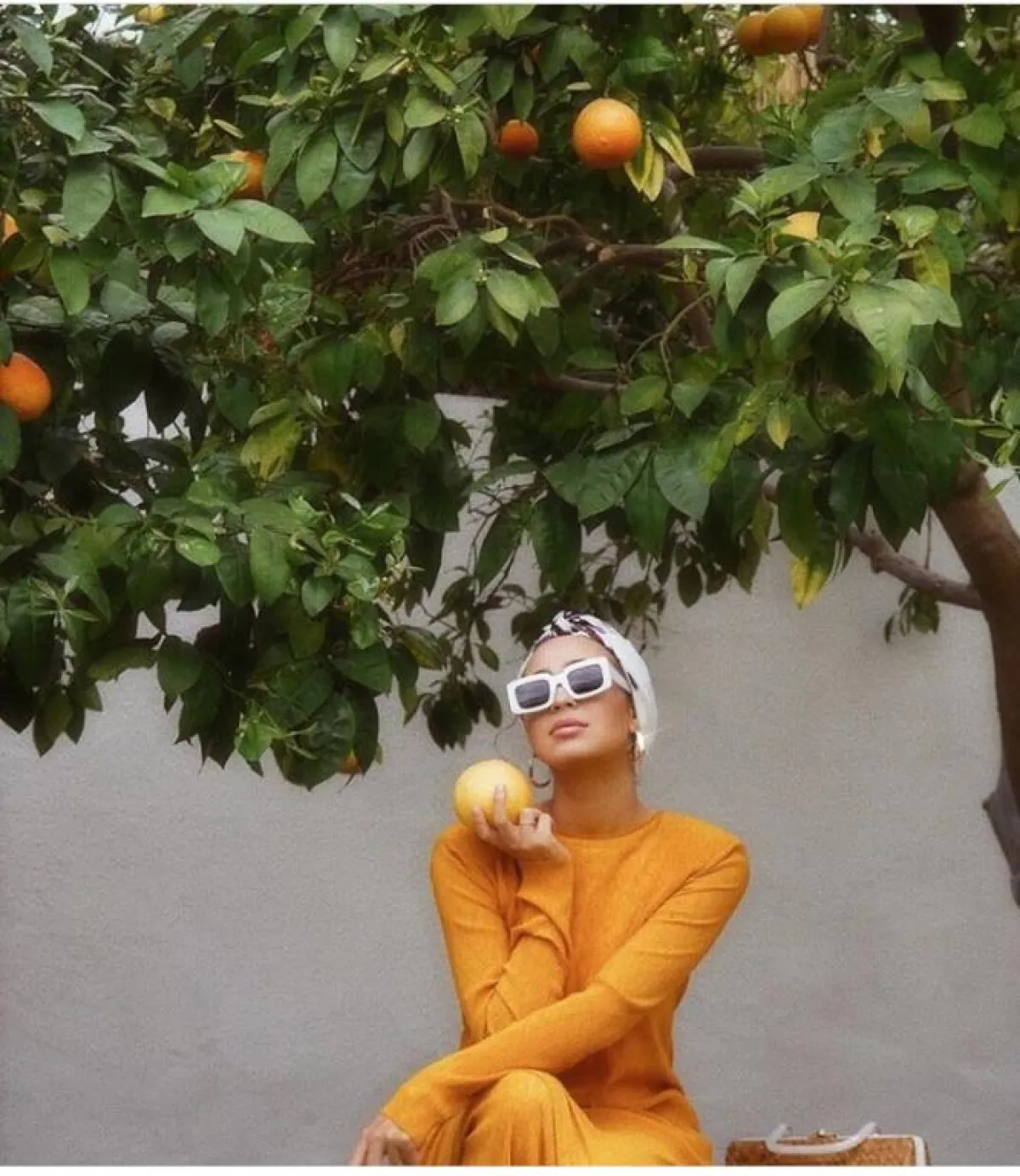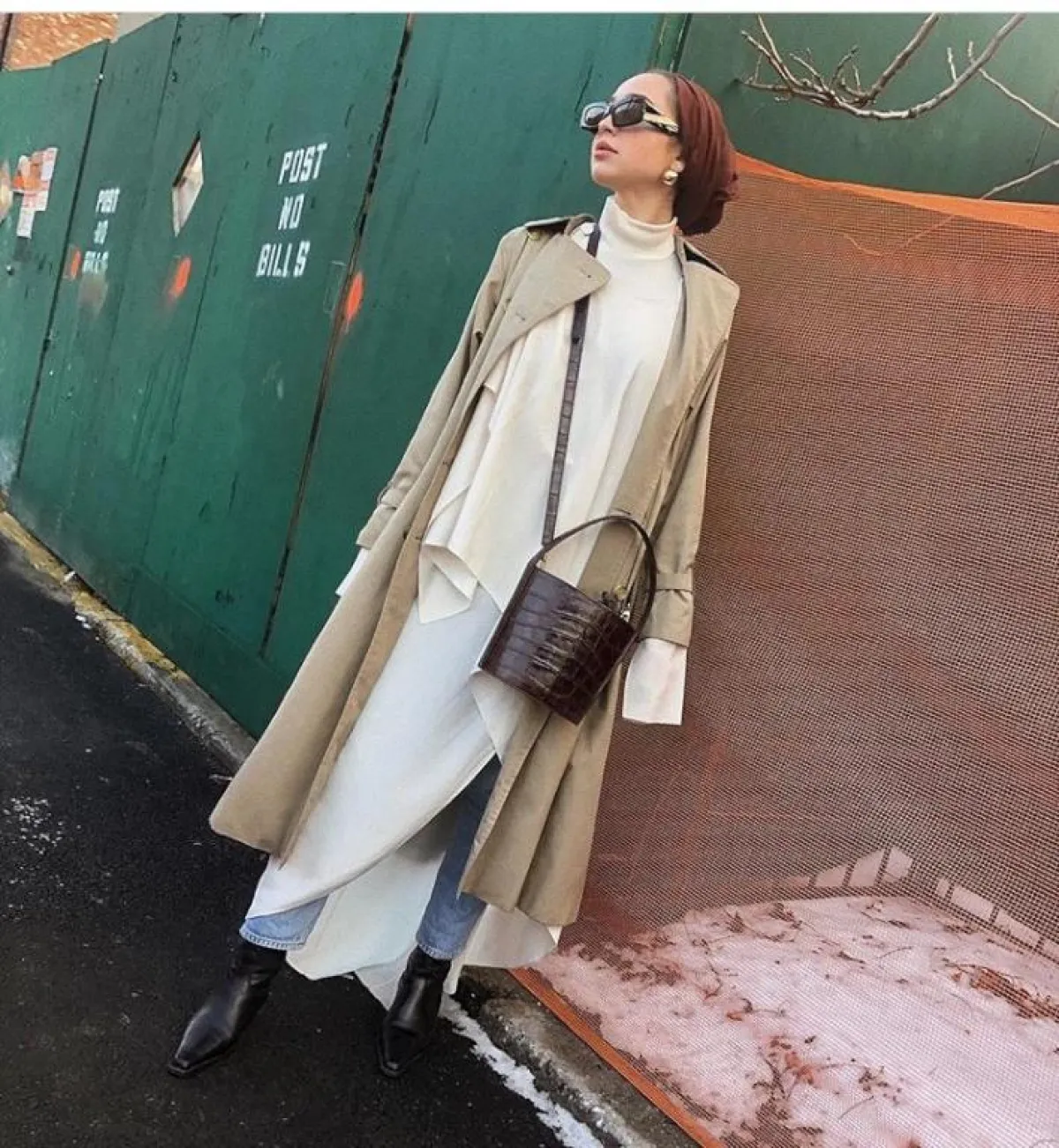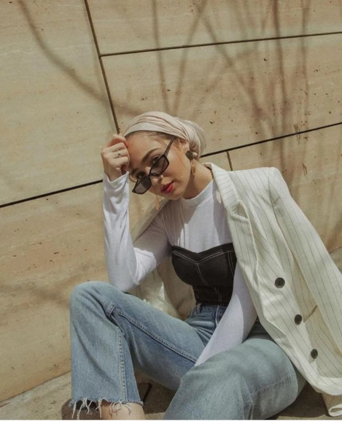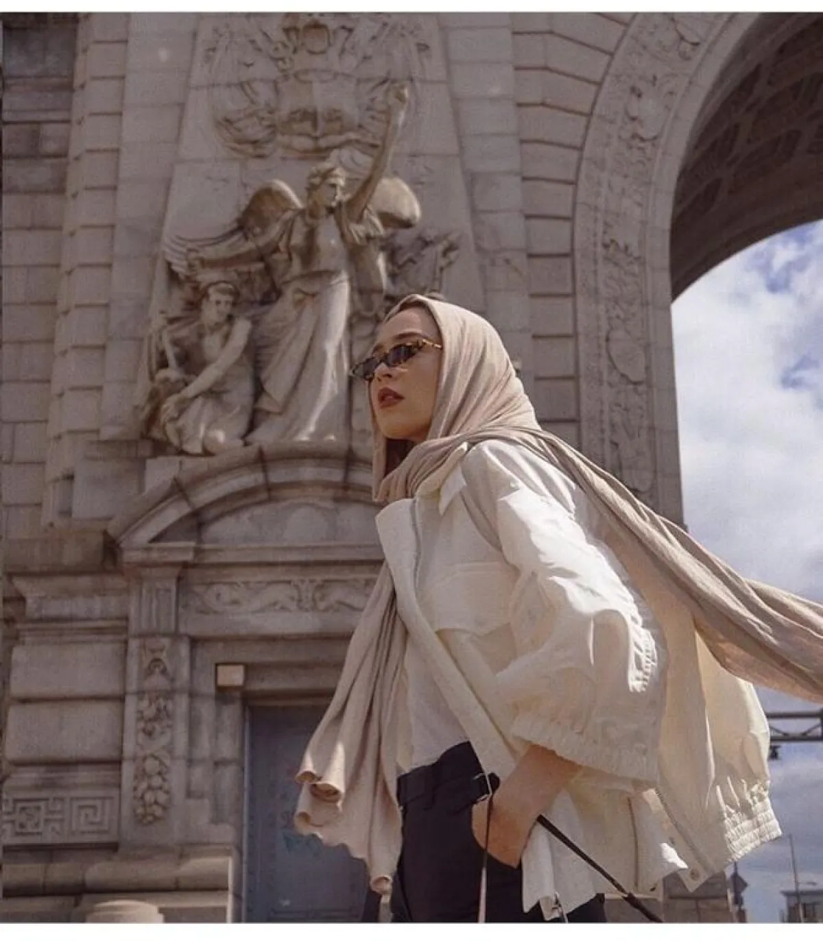 وكذلك اختارتها بتصميم أصغر حجمًا مع إطار tortoise frame sunglasses مستوحاة من التسعينيات، ويبدو أنّ هذا العام المقبل سيكون حافلًا بنظارات الميكرو الأصغر حجمًا، نسقتها مع الحجاب بألوان النود.