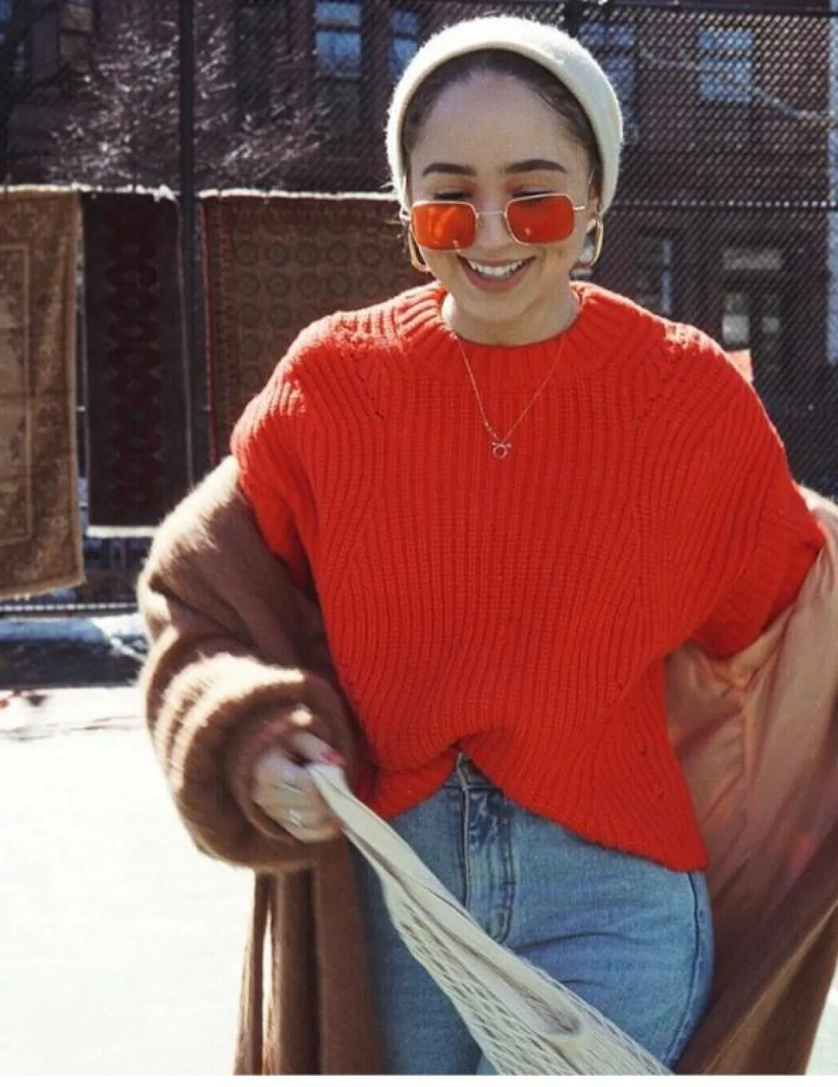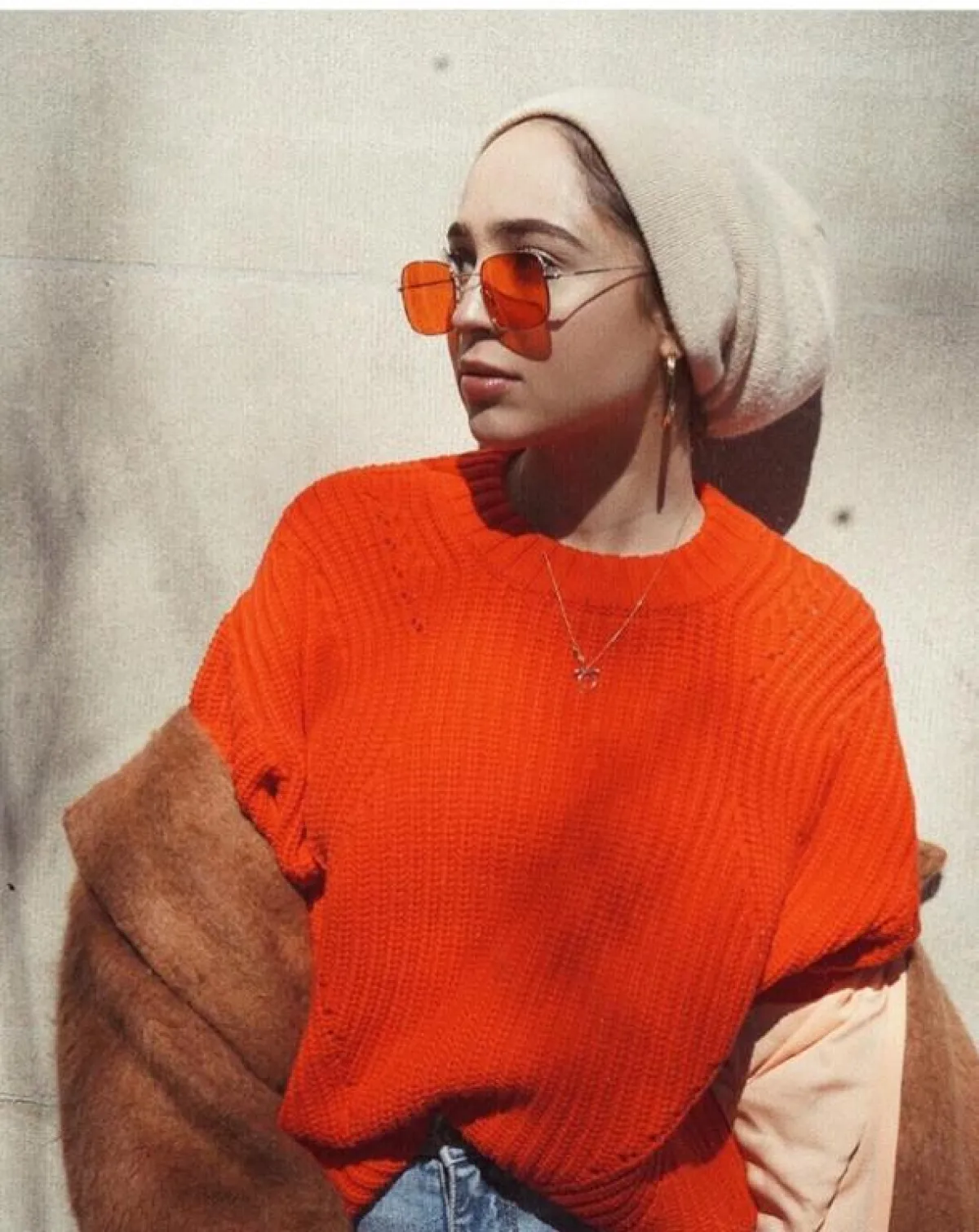 من الخيارات الجريئة أيضًا هو اعتماد العدسات الملونة، ستضيف لوجهكِ إضاءة و"لوك" خاطفًا للأنظار، كالنظارة المربعة من ماريا عليا بحجم متوسط، ارتدتها مع آيس كاب من الصوف، اعتمدته كالتوربان، مع كنزة صوف بلون النظارة نفسها، لاطلالة حيادية وغير تقليدية أيضًا، أضافت لمسة شبابية لمظهرها.