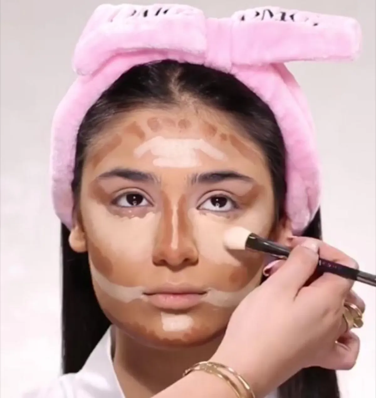- أهم خطوة في المكياج البرونزي هي تحديد الوجه بـ الكونتور، استخدمي الكونتور باللون البني الداكن لتحديد قسمات الوجه