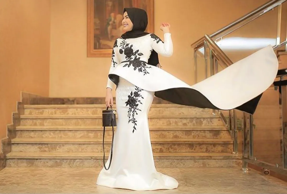 وجاء اختيار لوني الأبيض والأسود مع القصّة الضيقة قليلًا للفستان، غايةً في الرشاقة، ومريحة كذلك، نسقت معها حجابًا أسود لتكتمل الطلة الحيادية.