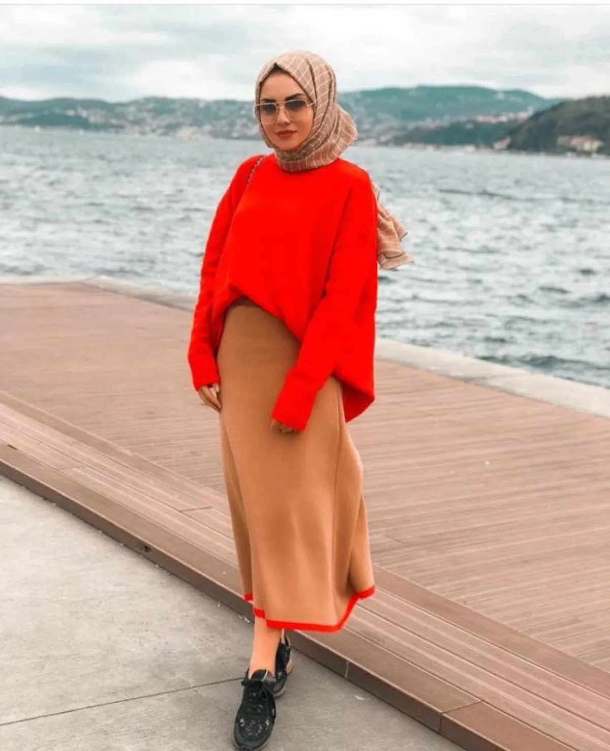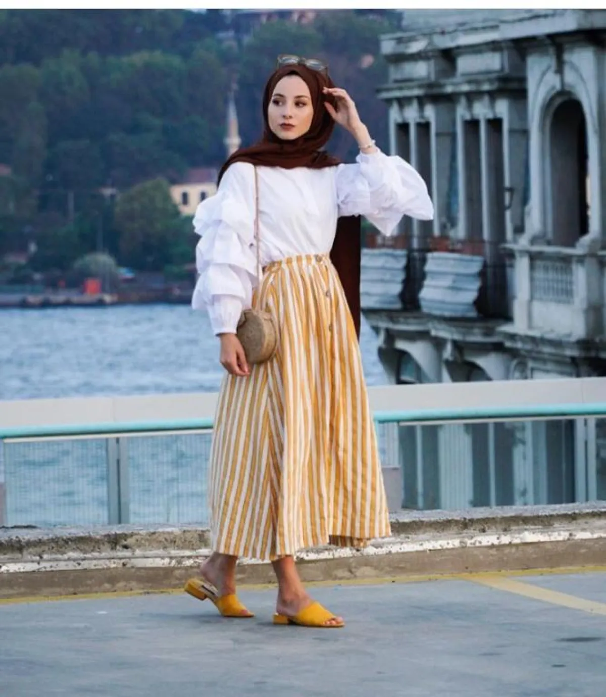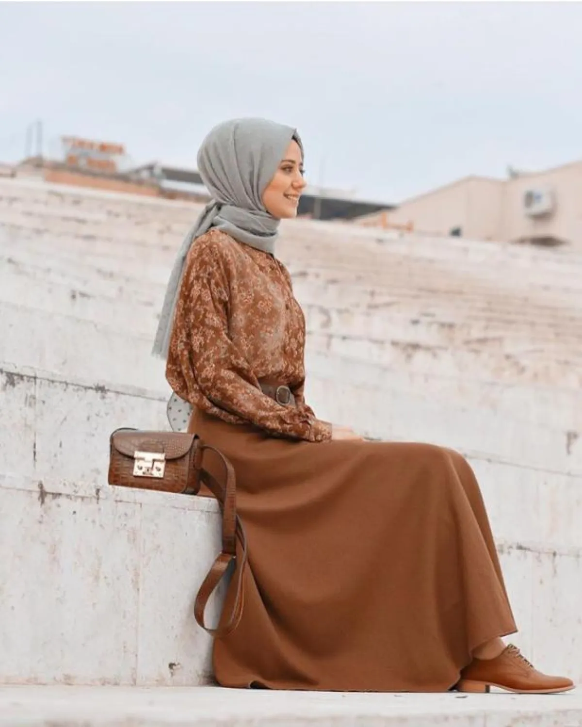 قد يكون هو خياركِ الأسهل لارتداء التنانير التركية الطويلة، والتي لا تكون منفوشة لكنها بقصات واسعة، كهذا التصميم من أيبيكي نور ديمرسي Aybuke Nur Demerci، نسقته مع بلوزة مطبعة بالورود بلون التنورة نفسه، لاطلالة حيادية وهادئة في الوقت نفسه.