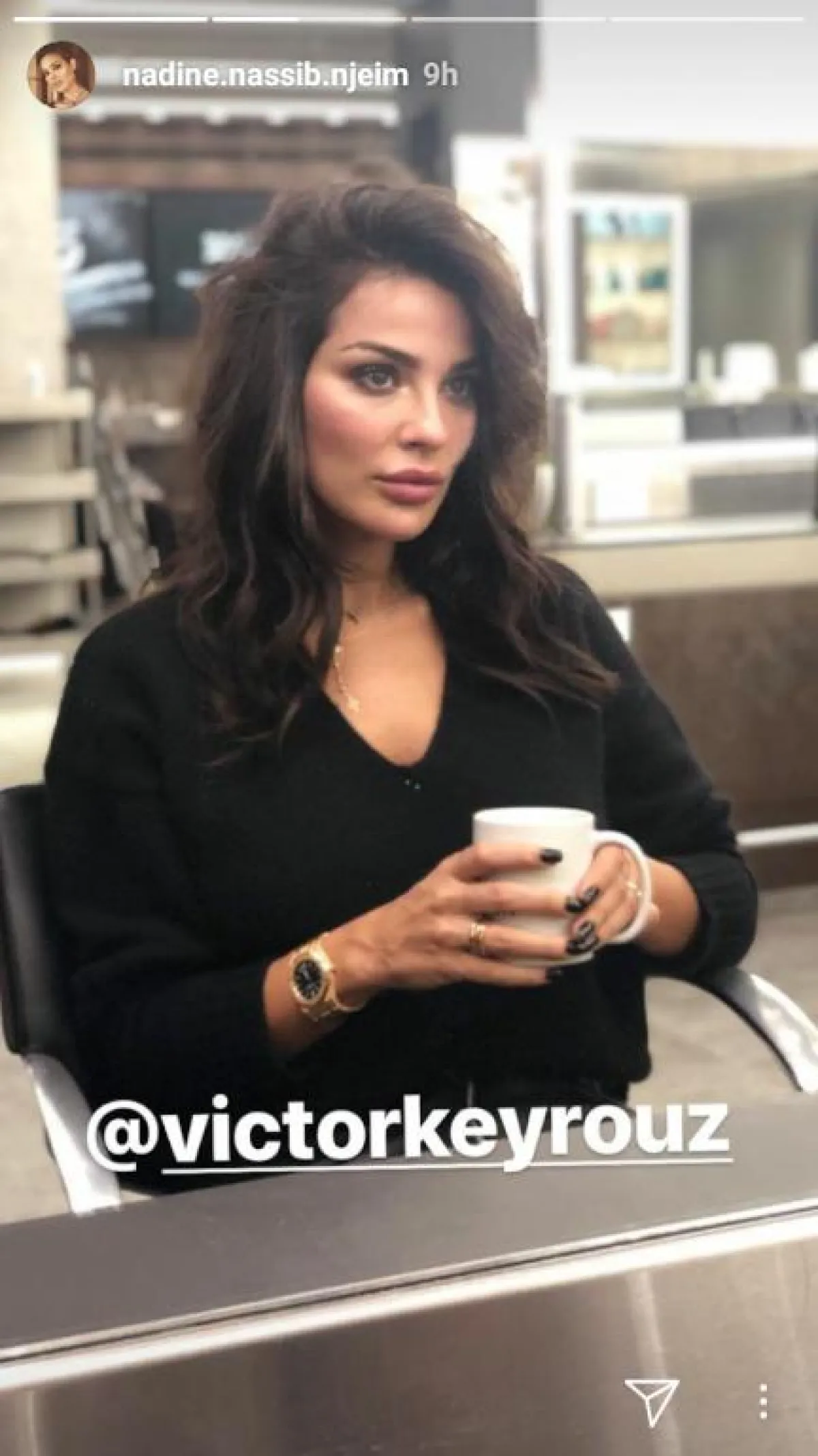ونشرت نادين صورة هي الاولى لها من مسلسل "خمسة ونص" وعلقت عليها" في كواليس التصوير".