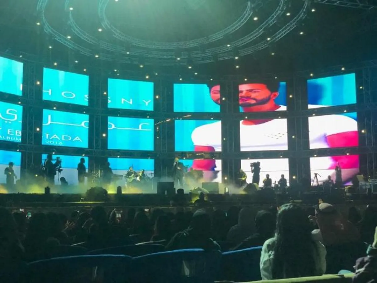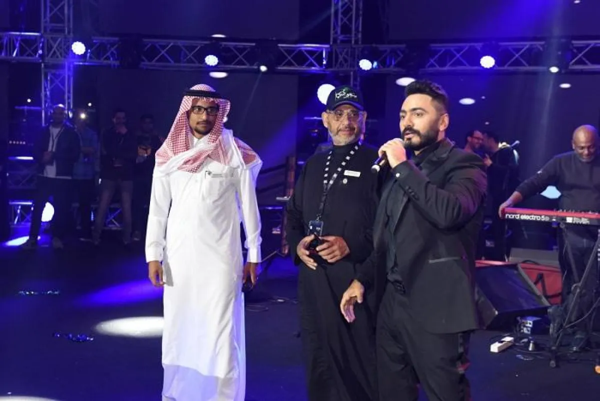 كما شكر الفنان تامر حسني على خشبة المسرح الجمهور السعودي ورئيس الهيئة العامة للترفيه وفريق عمله وفرق التنظيم .