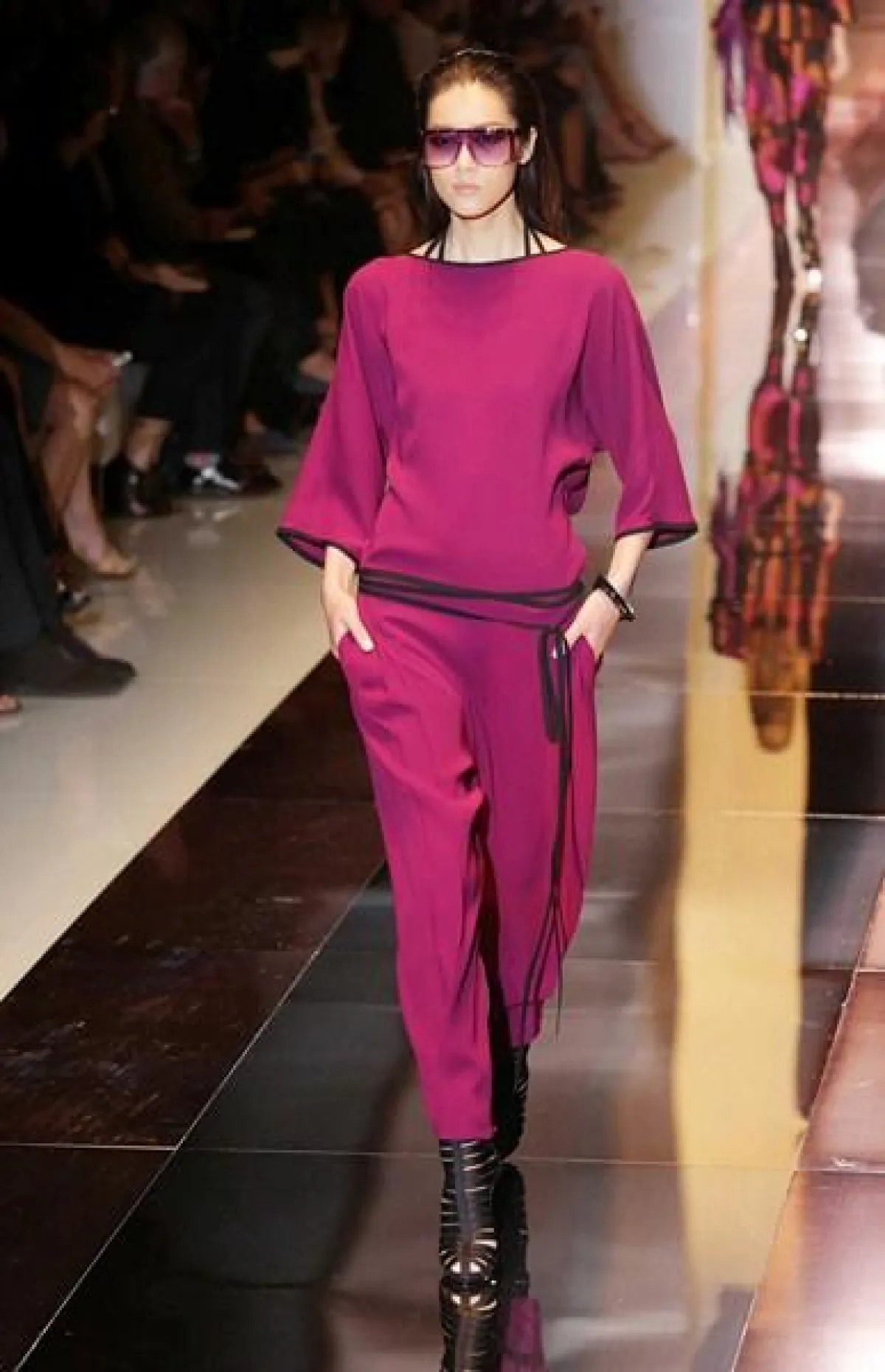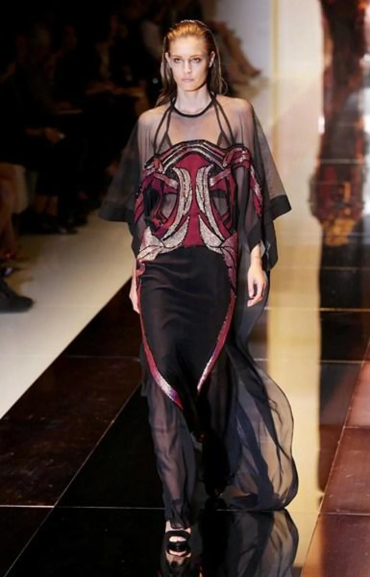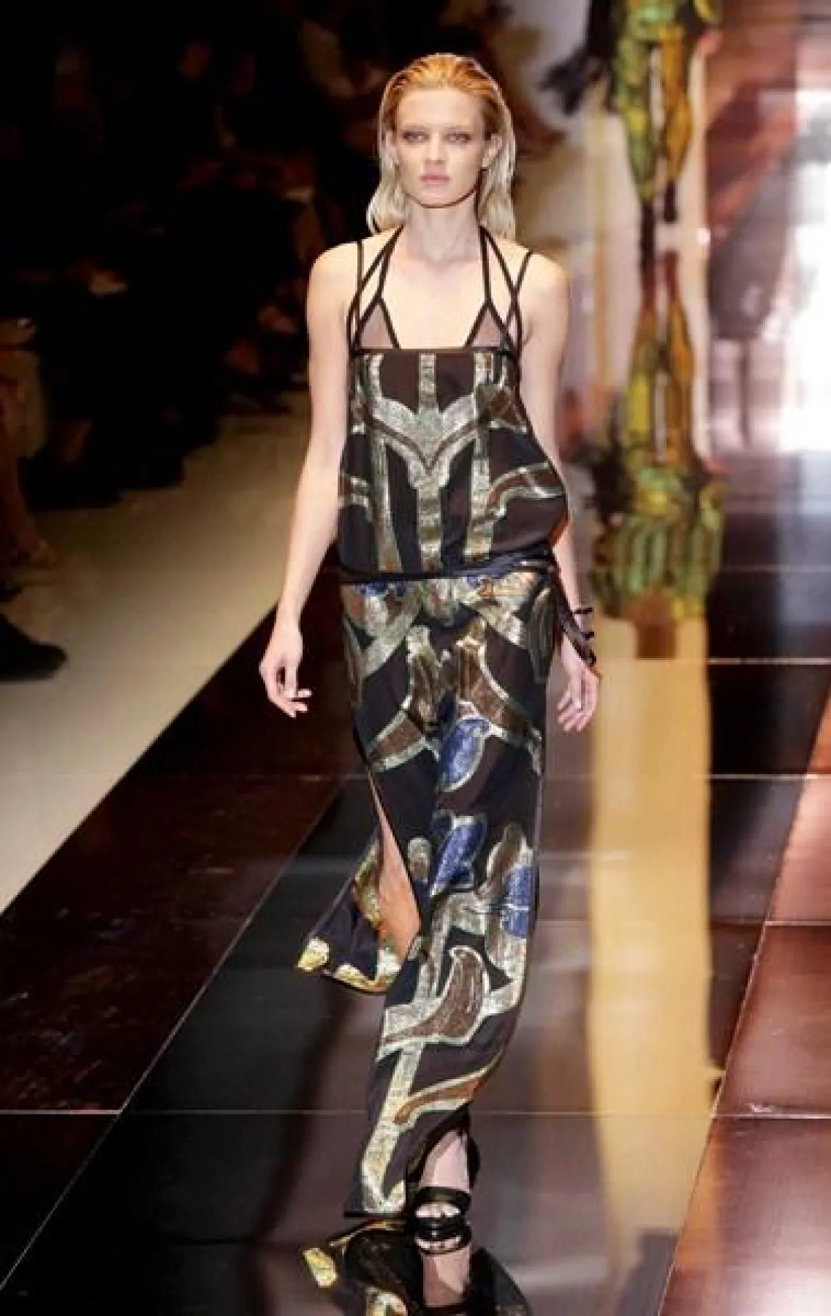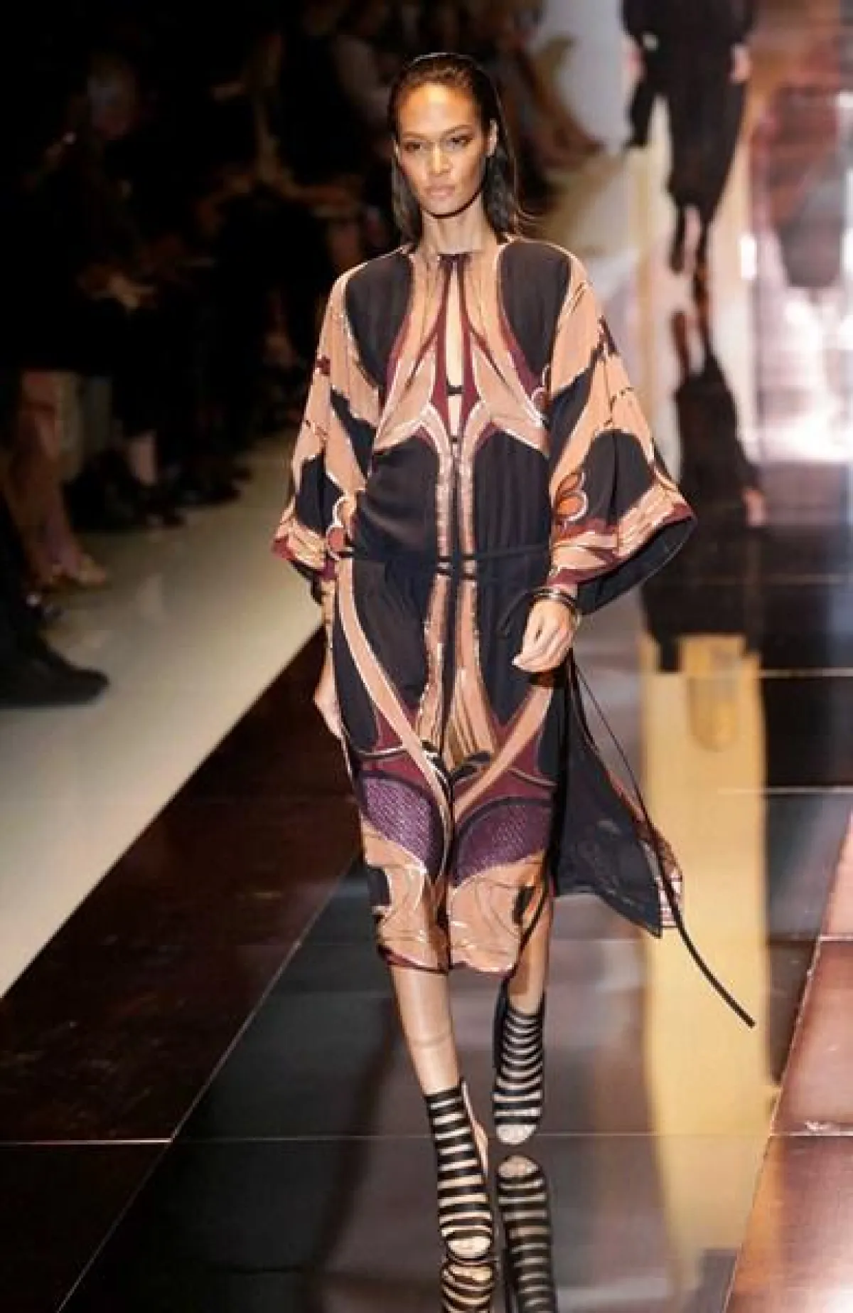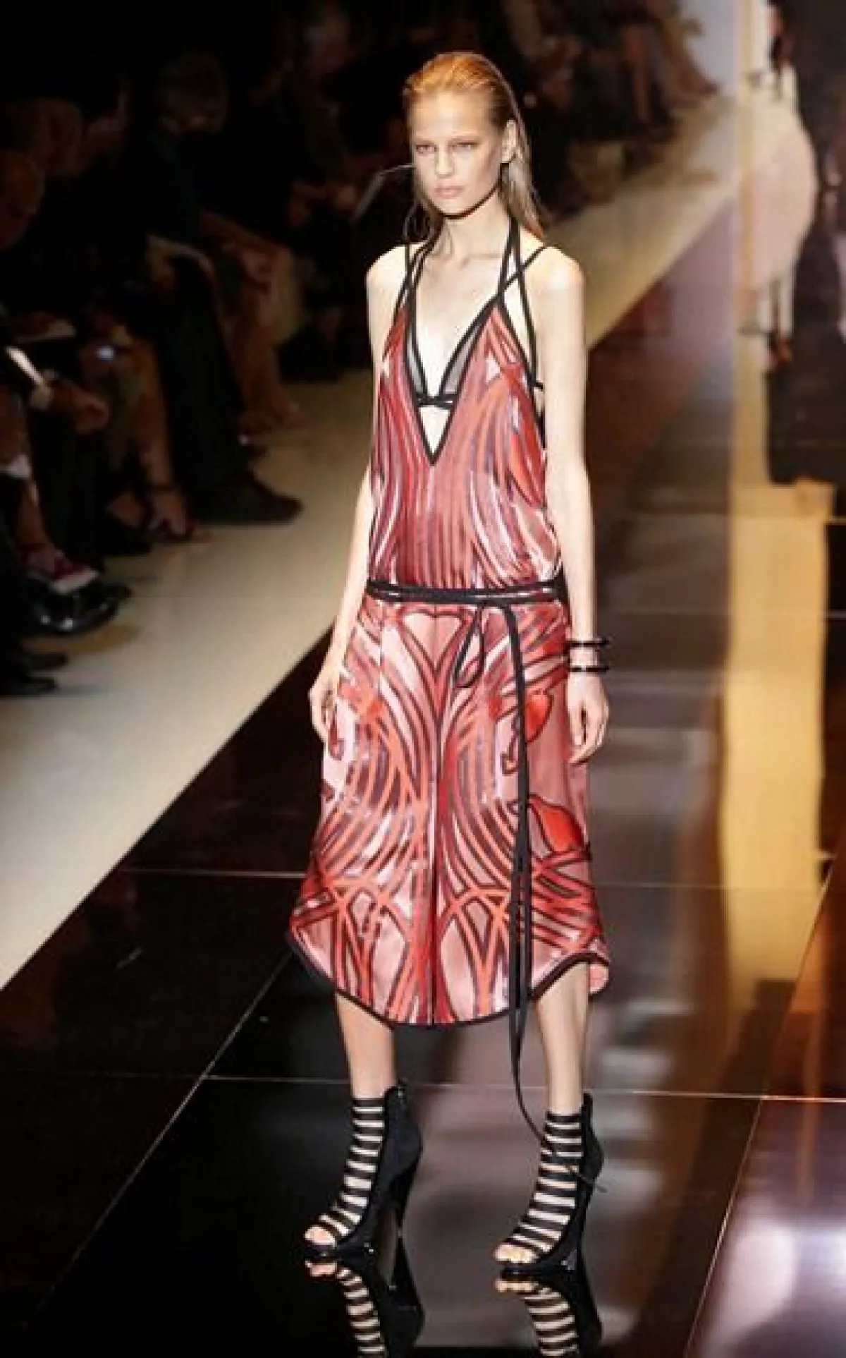 وطغى على المجموعة حضور الأقمشة المطبّعة والقصّات الناعمة والمنسدلة، حيث جاءت الفساتين بأقمشة متطايرة والتنانير بالقصّة المستقيمة وبالطول المتوسّط، إضافة إلى السراويل الفضفاضة والملوّنة المنسّقة مع التوبات بالأكمام الواسعة والأحذية التي أتت تشبه أحذية الغلادييتر إلى حدّ ما، بسبب الشرائط أو Straps الكثيفة والطويلة