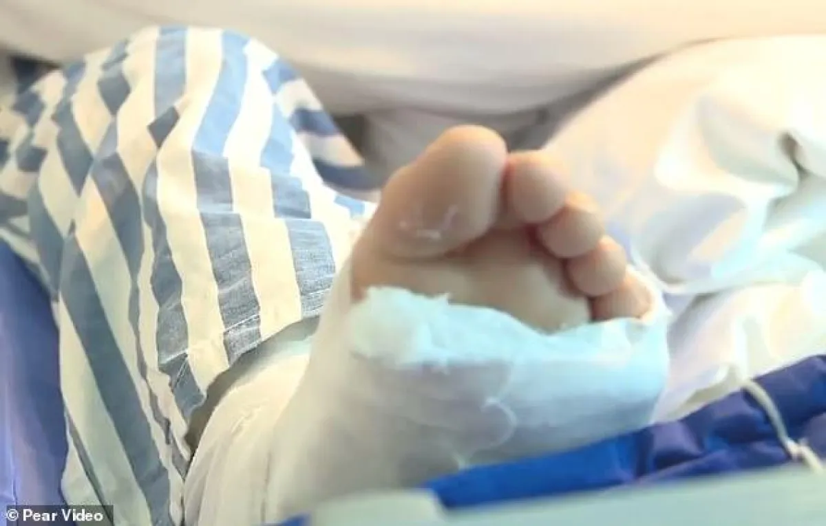 أصيب الطفل بقطع كبير في قدمه يبلغ عمقه أكثر من 10 سم، طبقاً لما قاله الدكتور «ليو شياورين» في مستشفى تشوتشو رقم 1 الشعبي، وقال الدكتور «ليو» إن التمزق كان عميقاً لدرجة أنه وصل إلى العظم، مضيفاً أن أعصاب الطفل وأوعيته الدموية تضررت أيضاً.