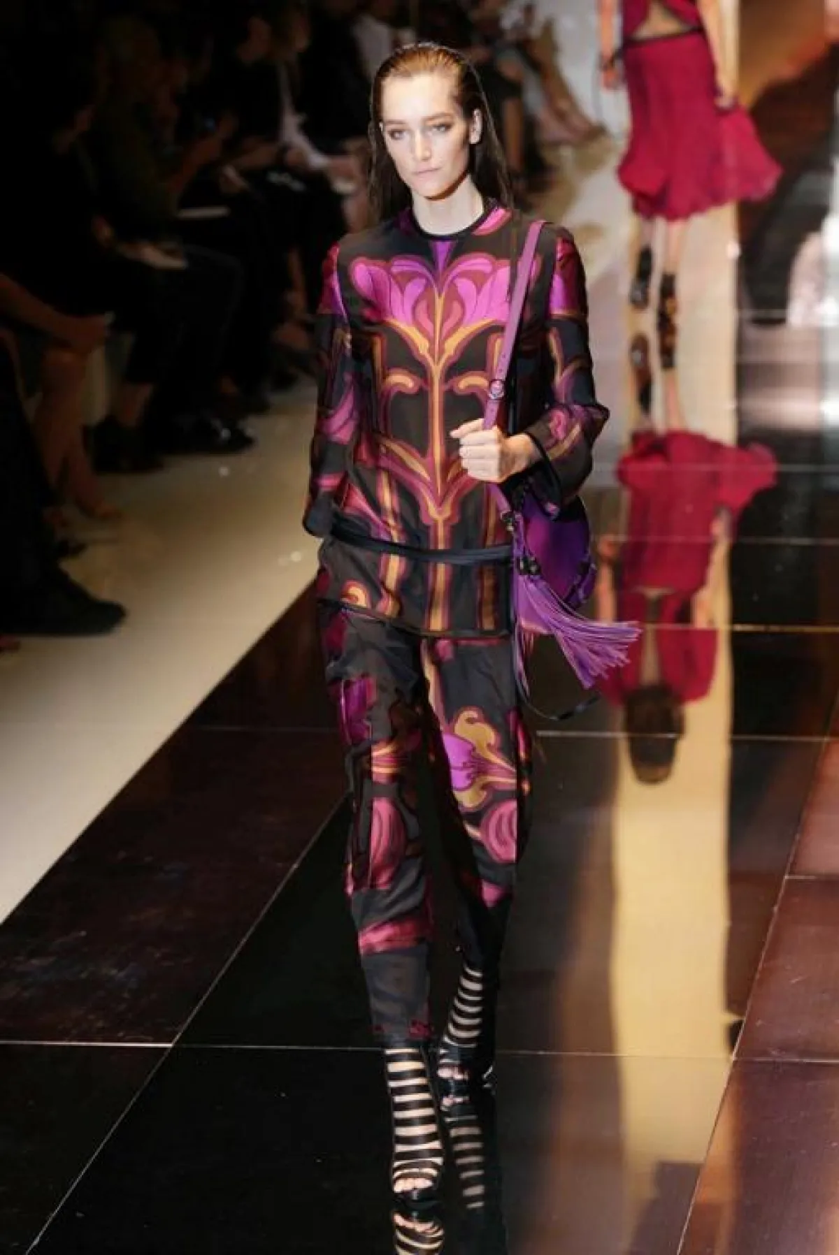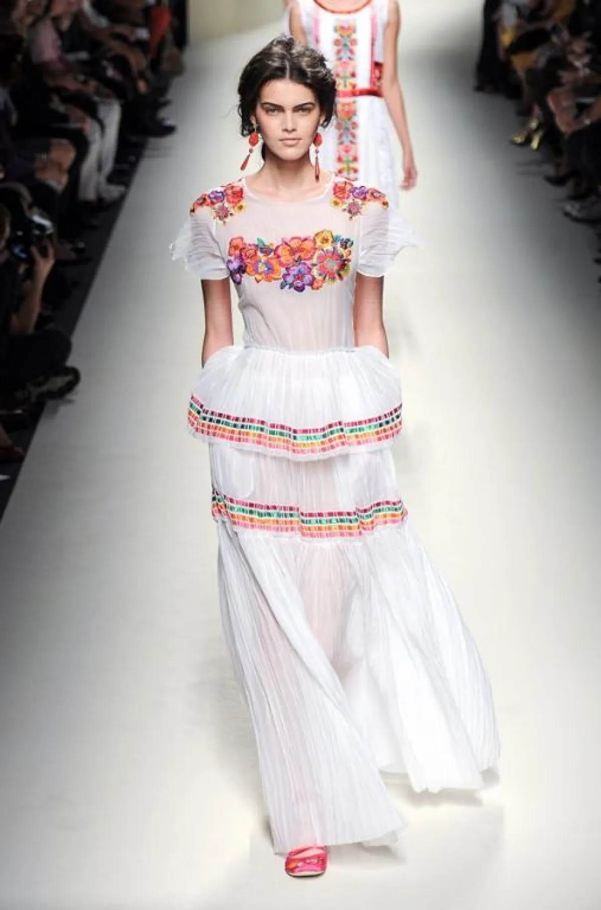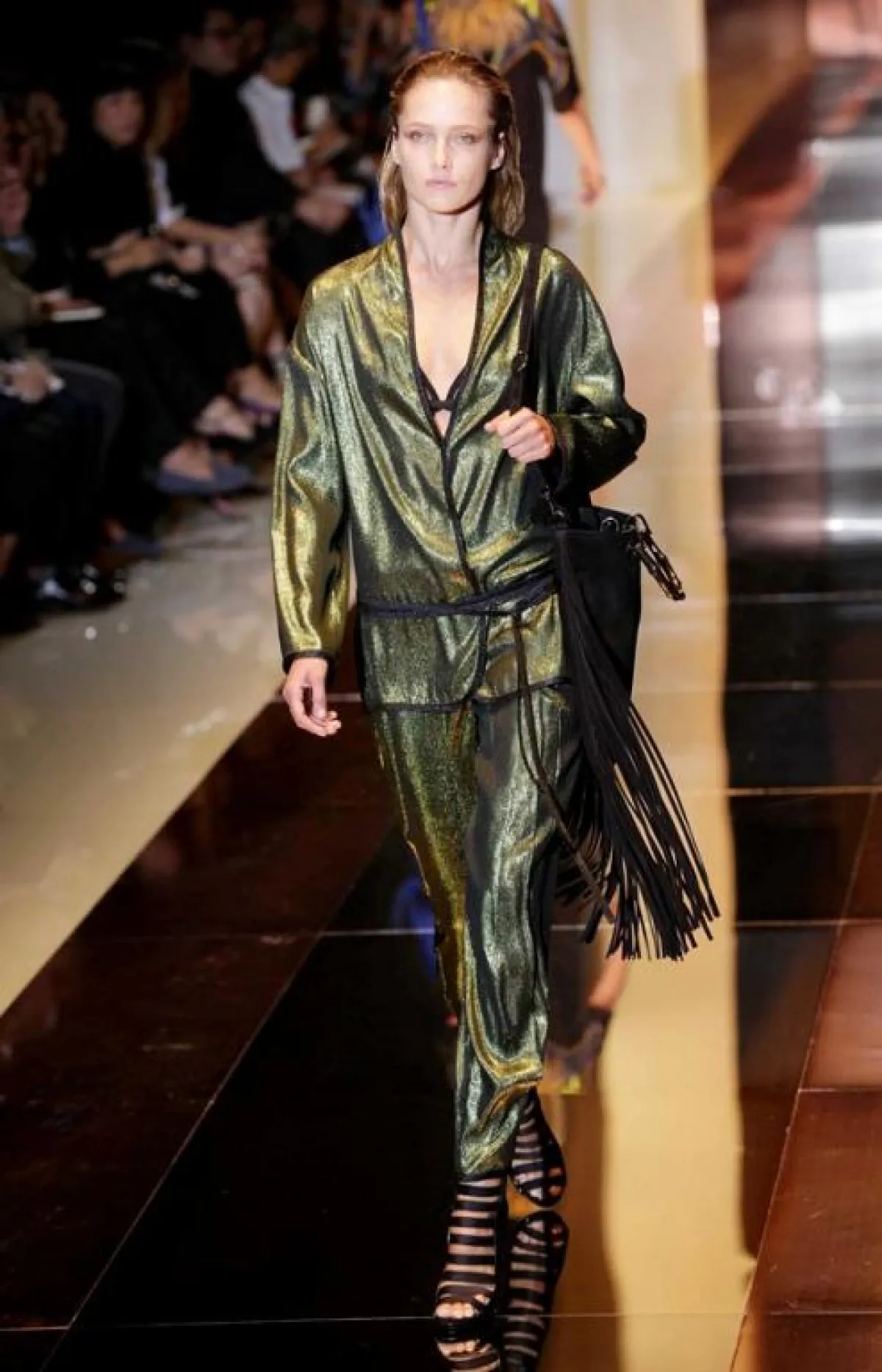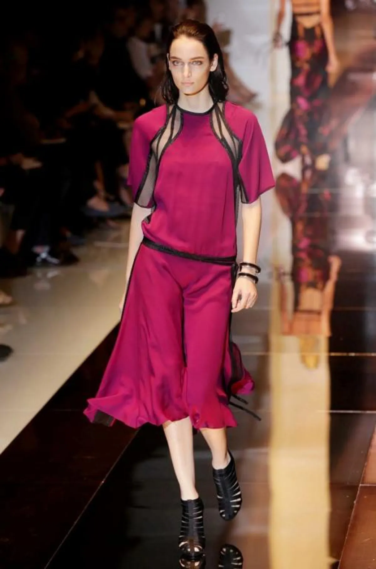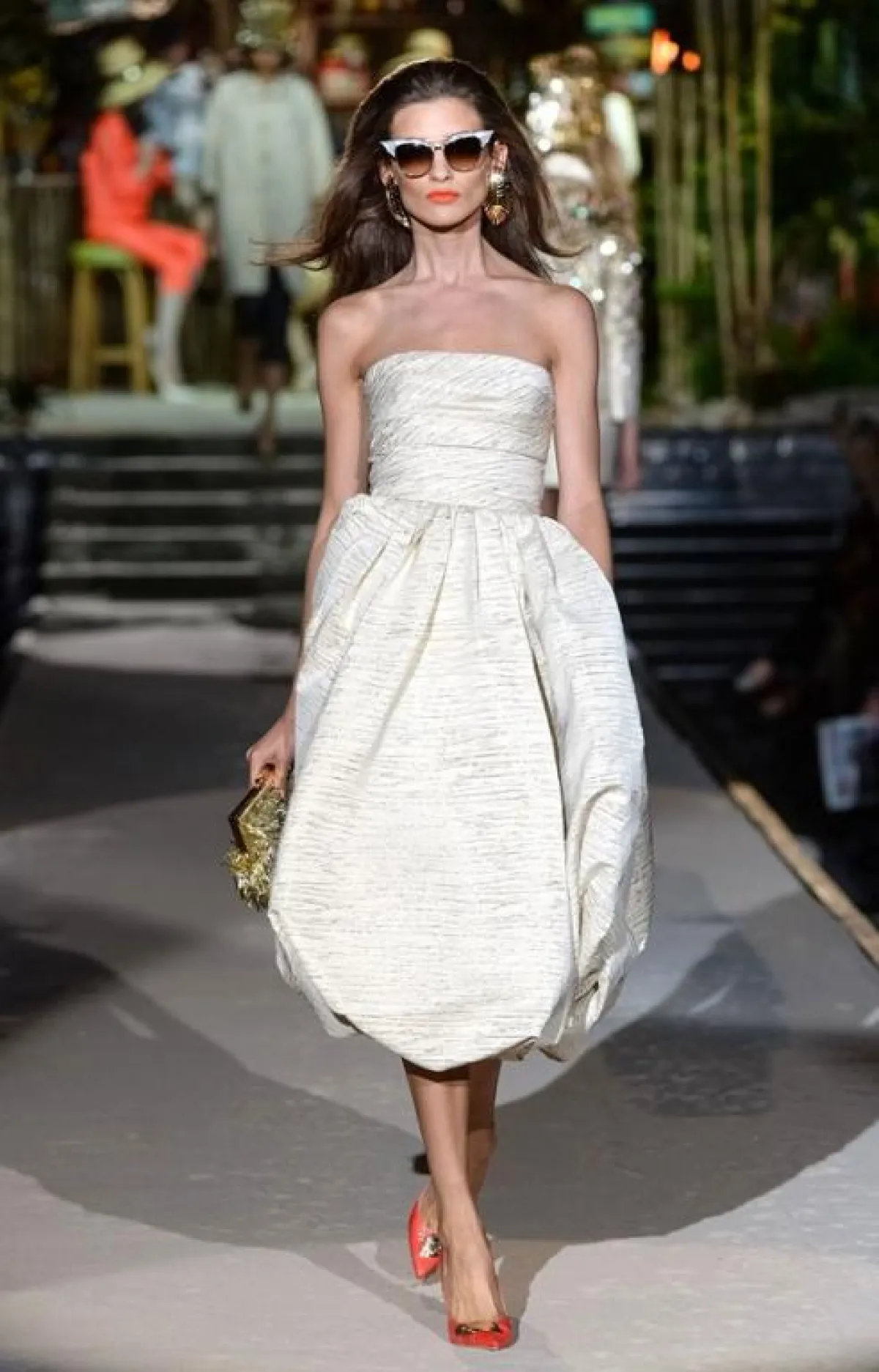 وفي متابعتنا لليوم الأول من هذا الأسبوع، وحضورنا بعض عروضه العشرة، يمكن أن نتوقف عند ثلاثة منها، هي: أولاً عرض دار Gucci، التي أضاءت الأسبوع بمجموعةٍ، فاجأت فيها المصمّمة "فريدا جيانيني" كلّ صناع الموضة، حيث ملأت المنصة بثياب واكسسوارات فيها كثير من اللمحات الرياضيّة، إلى الحدّ الذي دفع النقاد إلى القول بأنّها مجموعة "شبابيّة بشكل هجوميّ". وقد استخدمت المصمّمة كثيراً من التزيينات البراقة والخامات التي تتدرّج من الشفّافة إلى المعتمة، مع الجنوح إلى الألوان الداكنة والتركيز بشكل خاصّ على اللون الأسود. كما قدّمت أيضاً مجموعة من قمصان الـ"تي شيرت" المرسومة بألوان ميتاليكيّة. من جهتها، قدّمت المصمّمة الإيطاليّة Alberta Ferretti مجموعة تعتمد أساساً ديناميكة الأنسجة اللماعة والتزيينات والتطريزات الملوّنة التي تذكّرنا بالريف الإيطالي، خاصّة مع استخدام الخامات البيضاء. وأخيراً، قدّمت دار Dsquared2 للثنائي "دن" و"دان" مجموعة غارقة بالألوان والخطوط المرحة التي تذكّرنا برحلات الخمسينات، حيث النظارات اللمّاعة وقبّعات الشّمس الملونة والاكسسوارات المستوحاة من ألوان فاكهة الصيف.