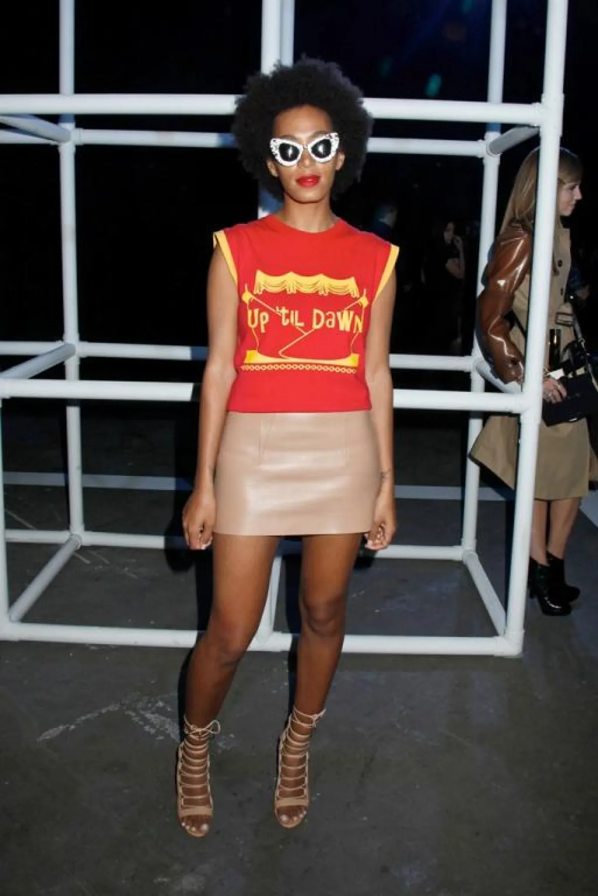 النجمة "نيكول كيدمان" Nicole Kidman حضرت عرض "كالفن كلاين" Calvin Klein بفستان باللون البيج وبتصميم بسيط جداً وأنيق، وبعد انتهاء العرض ذهبت الى حفلة العشاء الخاصة بالمناسبة بفستان أسود وحذاء لم يكن بمستوى الأناقة نفسه.