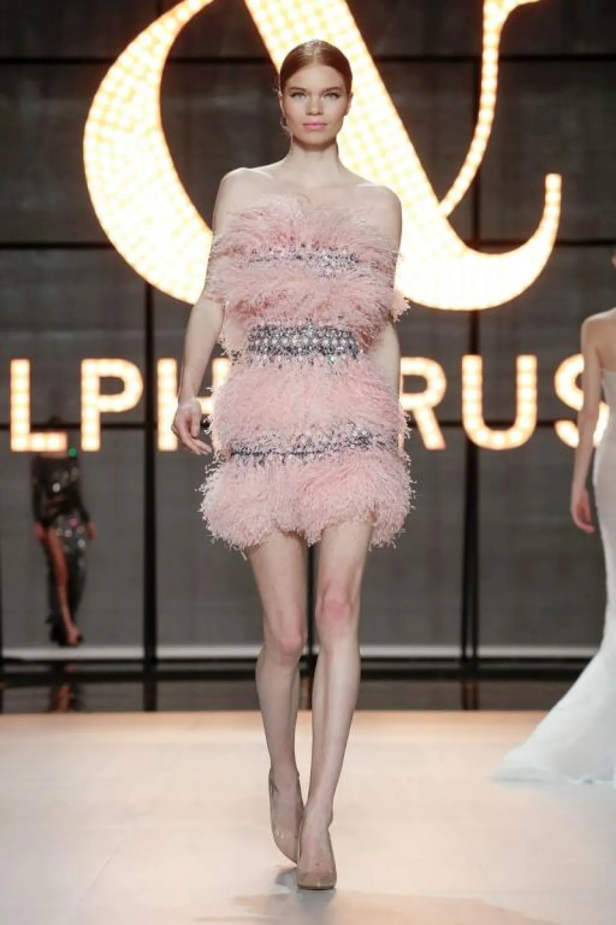 الريش من الصيحات التي مازالت محافظة بقوة على مركزها بصيحات الموضة، لهذا اخترناها لكِ بهذا الفستان القصير من Ralph & Russo رالف أند روسو، مطرز بالريش مع الأحجار الكريستالية.