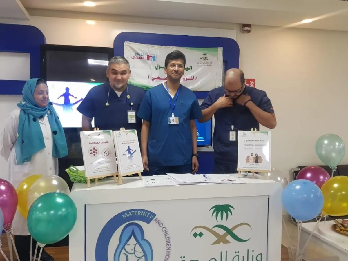 نظم قسم فحص ماقبل الزواج بالتعاون مع إدارة التوعية بمستشفى الولادة والأطفال بجدة فعالية اليوم التوعوي لفحص ما قبل الزواج بعنوان (الزواج الصحي) بحضور مدير المستشفى الدكتور ياسر الغامدي .