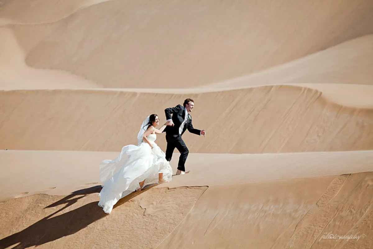 من الطائرات الصغيرة المرتفعة فوق الهضاب والكثبان الرملية والصحراوية وأحواض الأنهار، إلى القيادة، إلى المجهول في الطرق المليئة بالأتربة أو الحصى في كثير من الأحيان (هناك عدد قليل جدًّا من الطرق المعبدة) ، أو يمكنك اختيار رحلات طيران خلابة ومذهلة. يمكن أيضًا التطوع للحفاظ على الحياة البرية في شهر العسل مع منظمات مثل N / a’ankusê Wildlife Sanctuary و AfriCat المعنية في التقليل من التفاعلات السلبية بين البشر والحياة البرية، ويحتاجون بعض المتطوعين للمساعدة. وبالنسبة لعشاق الحيوانات الشغوفين ، توفر N / a’ankusê أيضًا فرصًا لإطعام صغار البابون والتنزه والجلوس مع السرقاط، والسير مع الفهود الرائعة. وإذا كنتم تريدون حقًا إثارة الإثارة ، يمكن التزلج على الكثبان الرملية أو ركوب الأمواج، أو تجربة صيد الأسماك على الأمواج بقضيب طوله 15 قدمًا على ساحل Skeleton (في نزل Shipwreck).