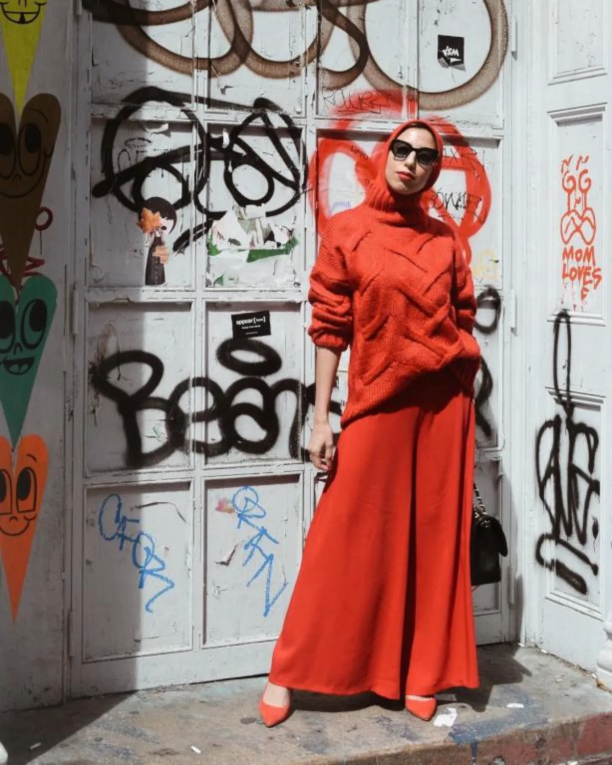 أما المدونة اللبنانية لانا الساحلي فذهبت إلى السروال الفضفاض بصيحة الكاروهات، واختارت اللون الأحمر لتستحضر روح الربيع، نسقت معه كنزة وسترة سواداء.