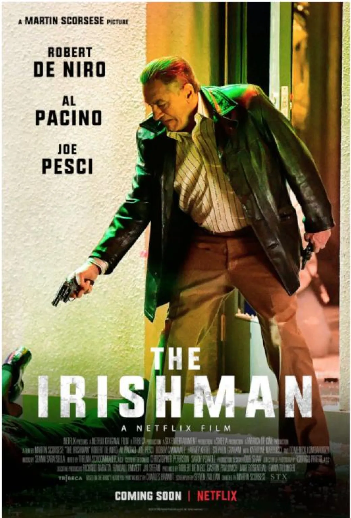 يشارك في بطولة " The Irishman" روبرت دي نيرو، آل باتشينو، جو بيشى، أنا بكوين، بوبي كانافالي، راي رومانو، هارفي كيتيل، ومن إخراج مارتن سكورسيزي، ومن تأليف تشارلز براندت، وستيفن زايليان.