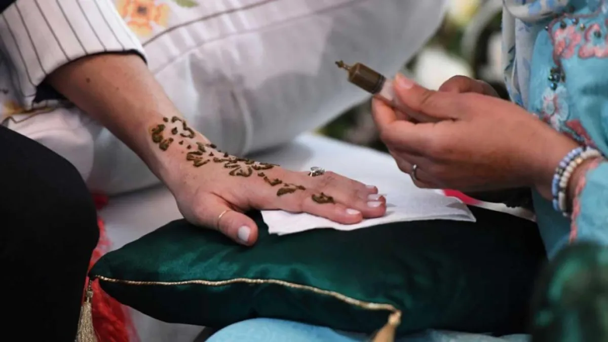 وخضعت ميغان لجلسة حناء عربية وكان بجانبها زوجها الأمير هاري، وقامت بنقش الرسوم فتاة تدعى سميرة وعدي، قالت عنها الأميرة: “كم هي رائعة!”.