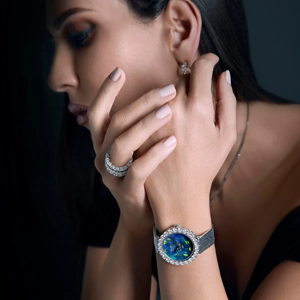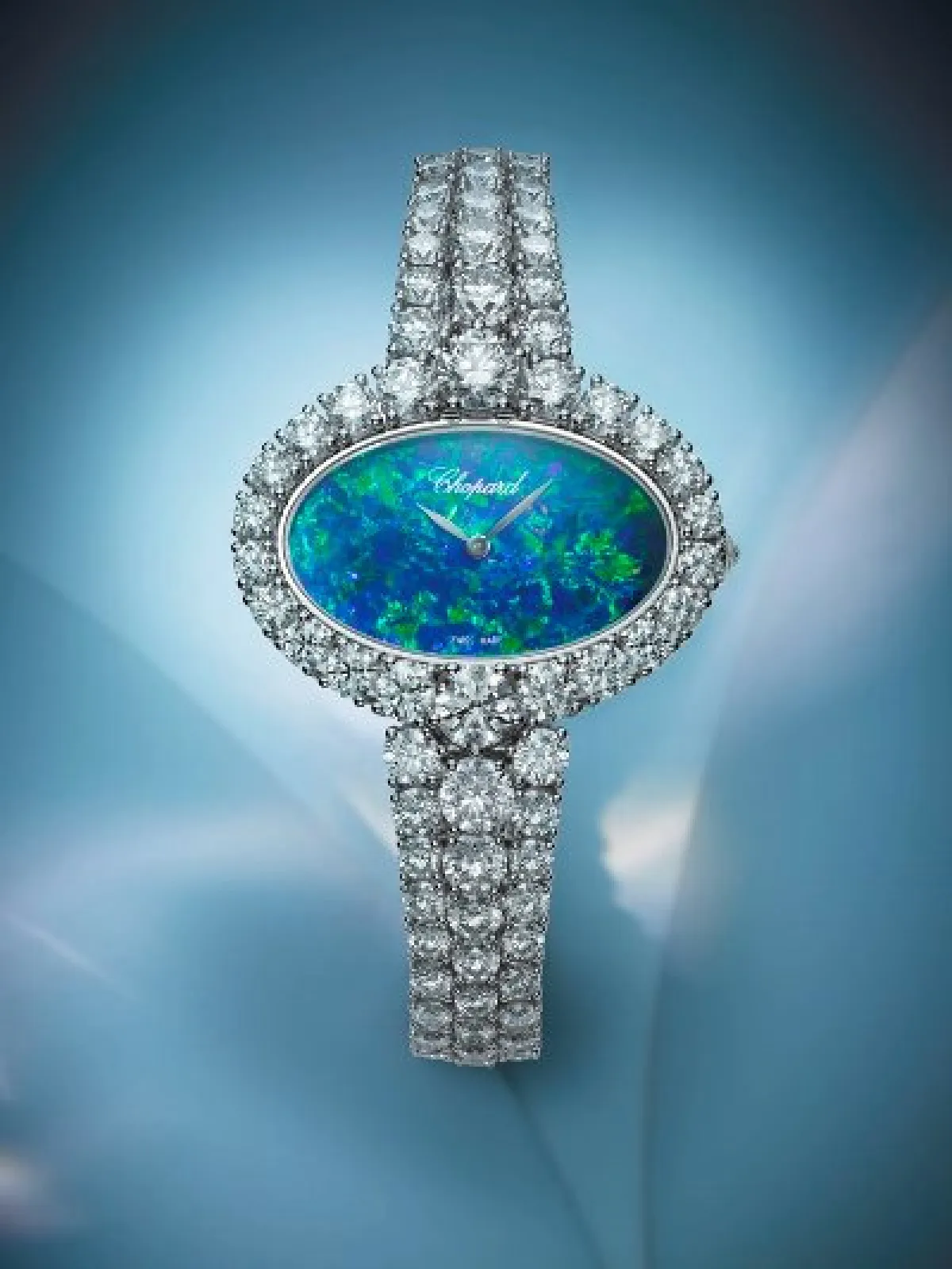 تمكنت دار شوبارد السويسرية المبدعة في صناعة الساعات والمجوهرات من التقاط قوة وتعقيد أحجار الأوبال ببراعة متناهية لتجسدها في إبداعات مذهلة، وذلك بعد أن مزجت داخل ورشاتها بين التصميم العصري وهذا الحجر الفريد بأسراره الغامضة، فتجلت النتيجة المبتكرة في مجموعة من ثلاث ساعات تبدو كتمائم تسري بها الحياة، لتشهد على السحر الذي يمكنها نقله من خلال مزيج خيميائي مثالي يجمع بين الشكل والمادة.