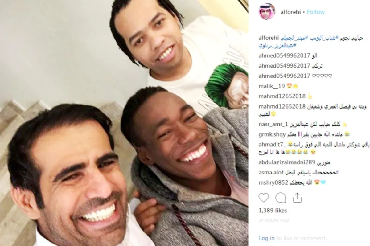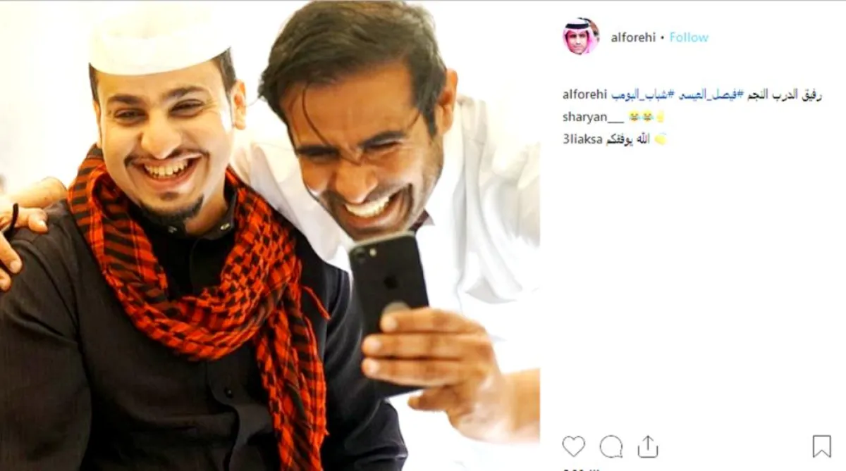 وكتب تعليقات مختلفة على الصور التي نشرها، حيث كتب على إحداها:(رفيق الدرب النجم #فيصل_العيسى #شباب_البومب)، فيما علَّق على صورة أخرى: (ضيفة شباب البومب 8 الفنانة لمار)، وعلَّق كذلك على صورة أخرى وقال: (حبايبي نجوم #شباب_البومب #مهند_الجميلي #عبد العزيز_برناوي).