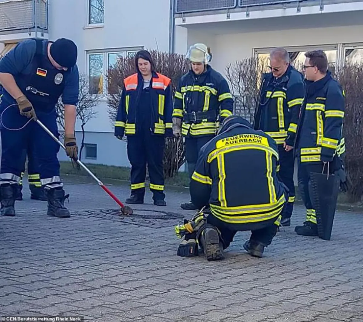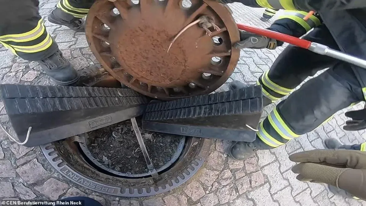 تسعة من أفراد رجال الإنقاذ وخبير في شؤون الحيوانات، قاموا بإنقاذ فأر كان عالقاً في فتحة غطاء المصرف في الشارع؛ مما عاق سيره وأصبح محشوراً فيها، وبحسب موقع «ديلي ميل»، تم رصد الفأر العالق في غطاء المصرف من قِبل أب وابنتيه الصغيرتين في بلدة بينشيم، بألمانيا؛ فقاموا بالاتصال بخدمات الطوارئ، واضطر إلى إنقاذه تسعة رجال إنقاذ، ووصل المنقذون وعمال إنقاذ الحيوانات إلى الموقع لجذب الفأر السمين من الفتحة الضيقة، وعند وصولهم، وجدوا الفأر يحاول تحرير نفسه من الفجوة الصغيرة، واستخدم رجل إطفاء رباطاً مثبتاً بعصاه لالتقاط أقدام الفأر وسحبه، بينما رفع عمال الإنقاذ الآخرون الغطاء باستخدام عوارض، وبمجرد أن تم إطلاق سراح الفأر، قام رجال الإطفاء بإسقاطه إلى أسفل المجارى.
