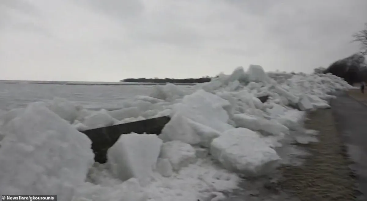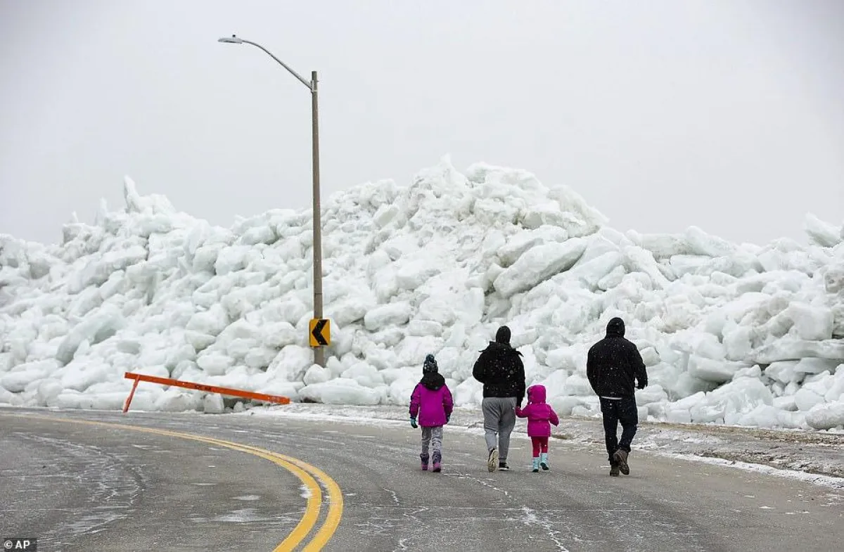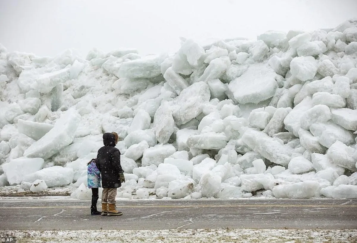 وفقًا لما نشرته «ديلي ميل» البريطانية، حركت الرياح الجليد المتراكم ببحيرة إيري التي تقع بالقرب من الحدود الكندية بمدينة نيويورك، بقوة نحو الشاطئ والذي تمكن المارة من مشاهدته يتحدر بقوة نحوهم كالقطع الصخرية الضخمة.