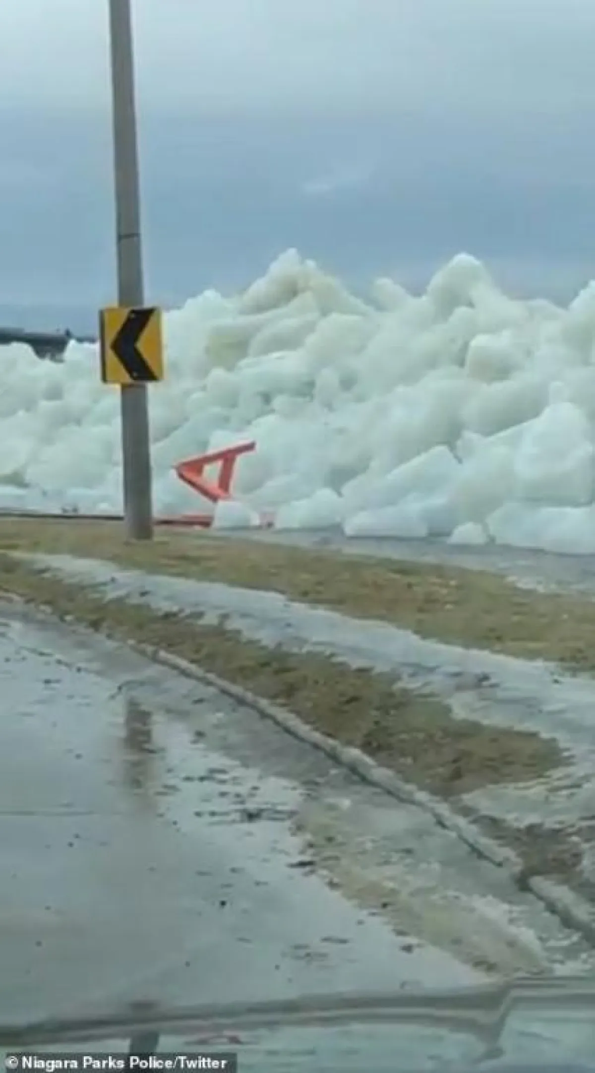 شاركت شرطة نياجارا باركس فيديو تم تصويره لكارثة تسونامي الجليد يوم الأحد وحذرت أي شخص في المنطقة من القيادة بحرص.