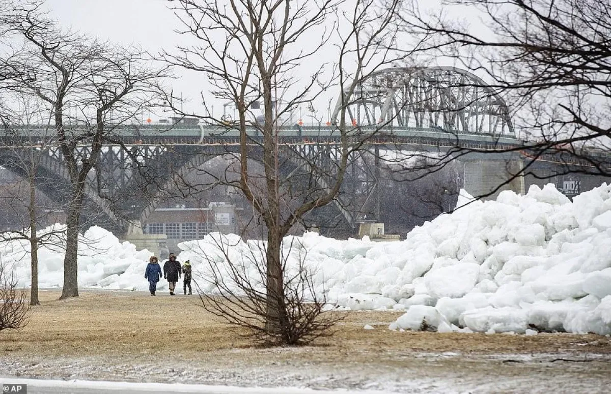 وصل ارتفاع الجليد الذي خلفته الرياح إلى ما يقرب من 10 أمتار، أما على شاطئ نهر نياجارا بشمال البلاد فوصل الحاجز الجليدي إلى ارتفاع 30 مترًا.