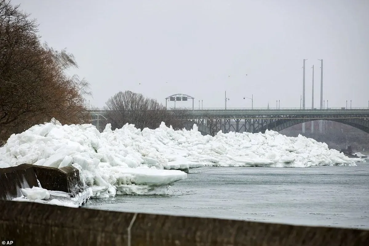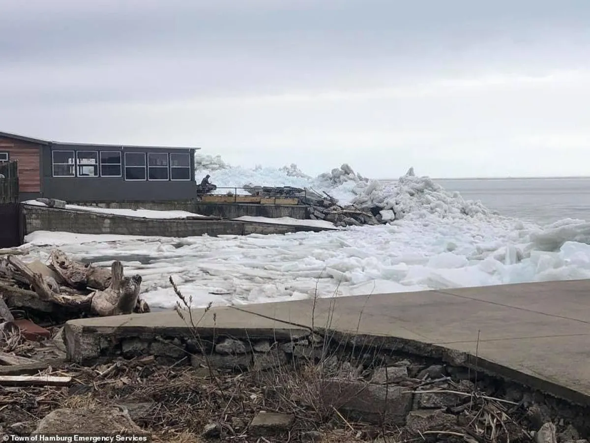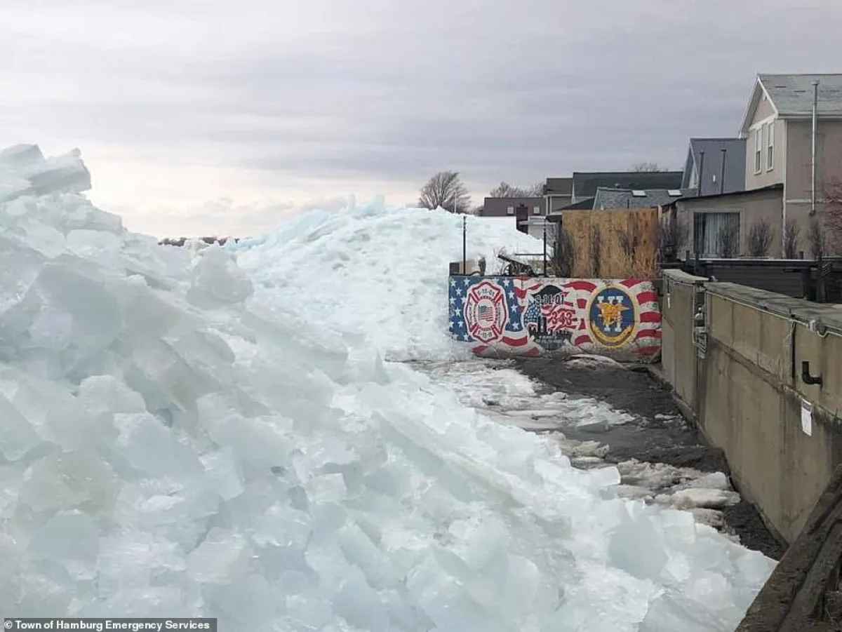 تسببت الرياح العاتية التي تضرب جميع أنحاء شرق الولايات المتحدة في حدوث «تسونامي جليدي» نادر في شمال ولاية نيويورك.