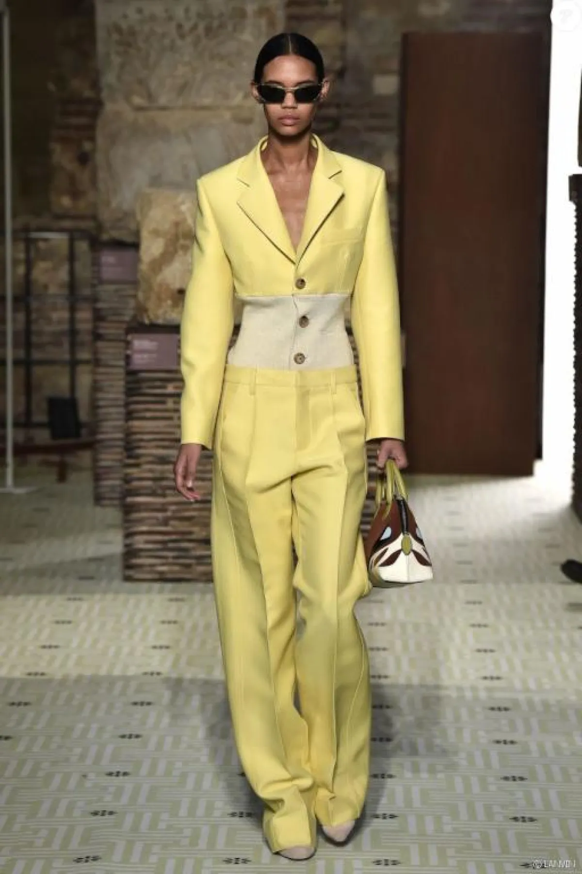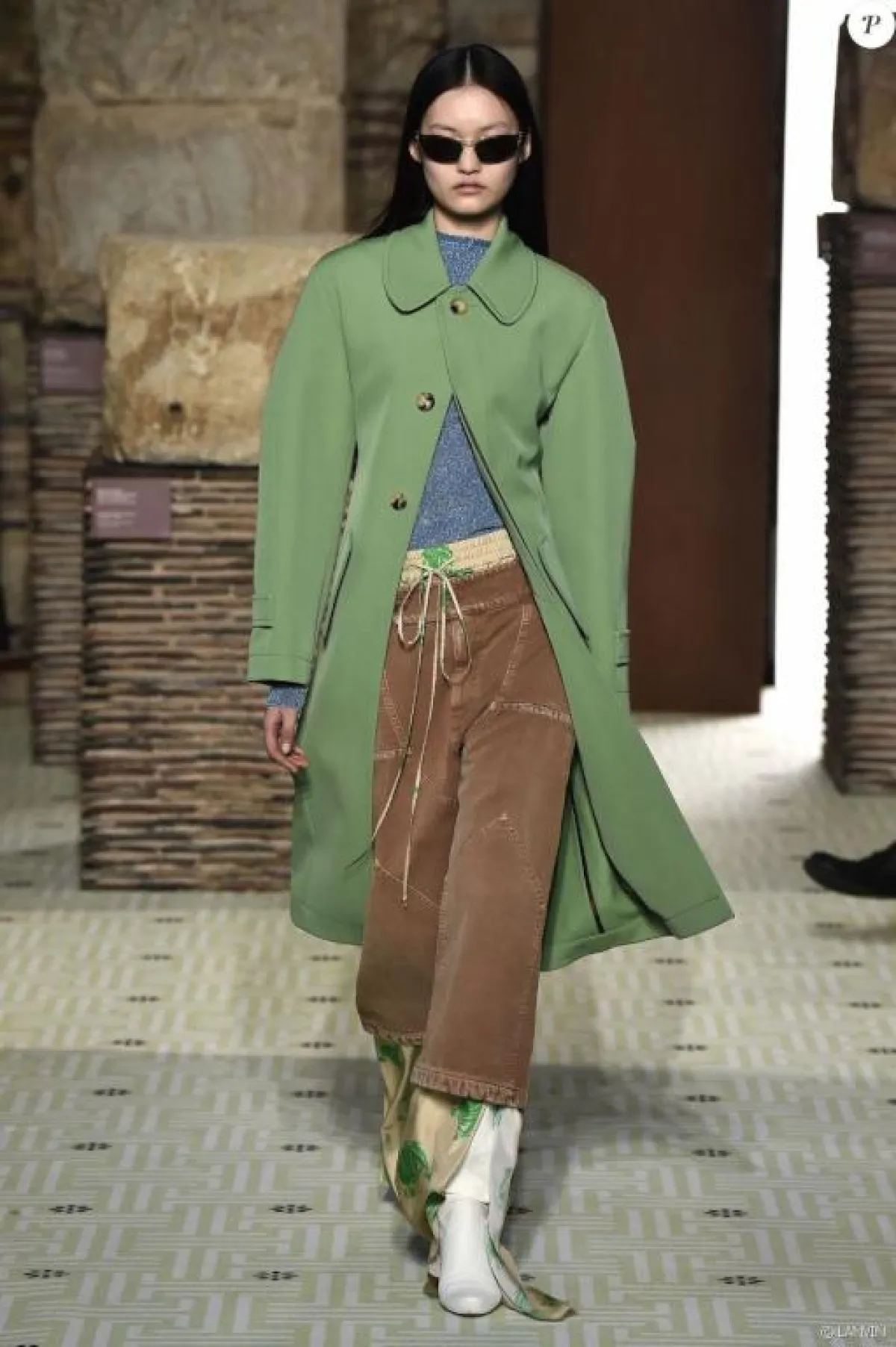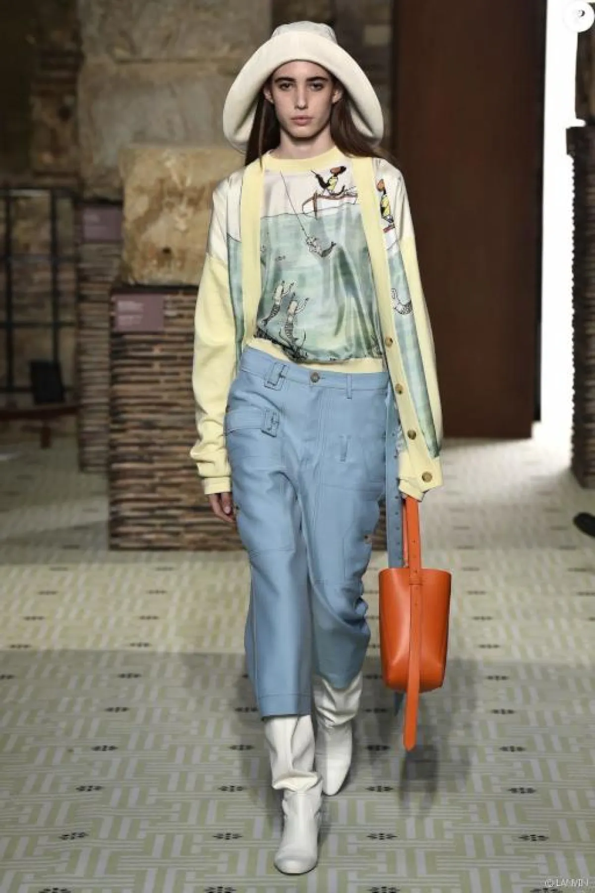 ربح المصمم الفرنسي " برونو سياليلي " Bruno Sialelli المدير الإبداعي الجديد لدار " لانفان " Lanvin الرهان ،حيث كان العرض الذي قدمه يوم أمس في مستوى سمعة هذه الدار، أضاف هذا المصمم الشاب لمسة عصرية وشبابية ،تجلت في أزياء " سبورت وير"، طعّمها بتفاصيل بوهيمية ،تجلت في تراكب الأقمشة المزركشة وتناغم كبير في توليف الألوان الباستيل، التي تنوعت ما بين الأصفر ، والزهري والأخضر المائي، تخللت العرض قطع شتوية قوية تجسد هوية الدار، خاصة المعاطف الطويلة التي نُسقت مع أحذية جلدية ذات اللون الأبيض، والتي طُعّمت بقطع من القماش المطبع، برز إمضاء هذا المصمم في السترات المنتفخة التي تخللتها ربطات من الجلد، جاءت على شكل ربطة العنق ،نُسقت معظم أزياء العرض مع حقائب جلدية كبيرة الحجم .