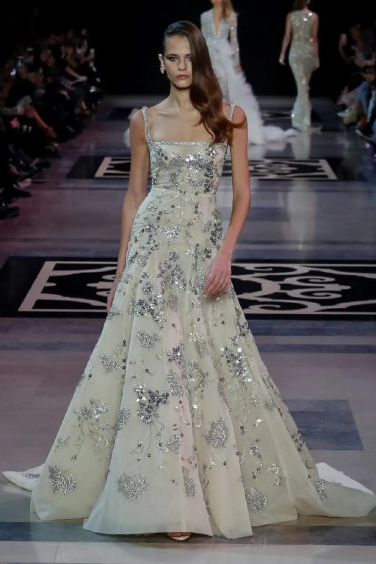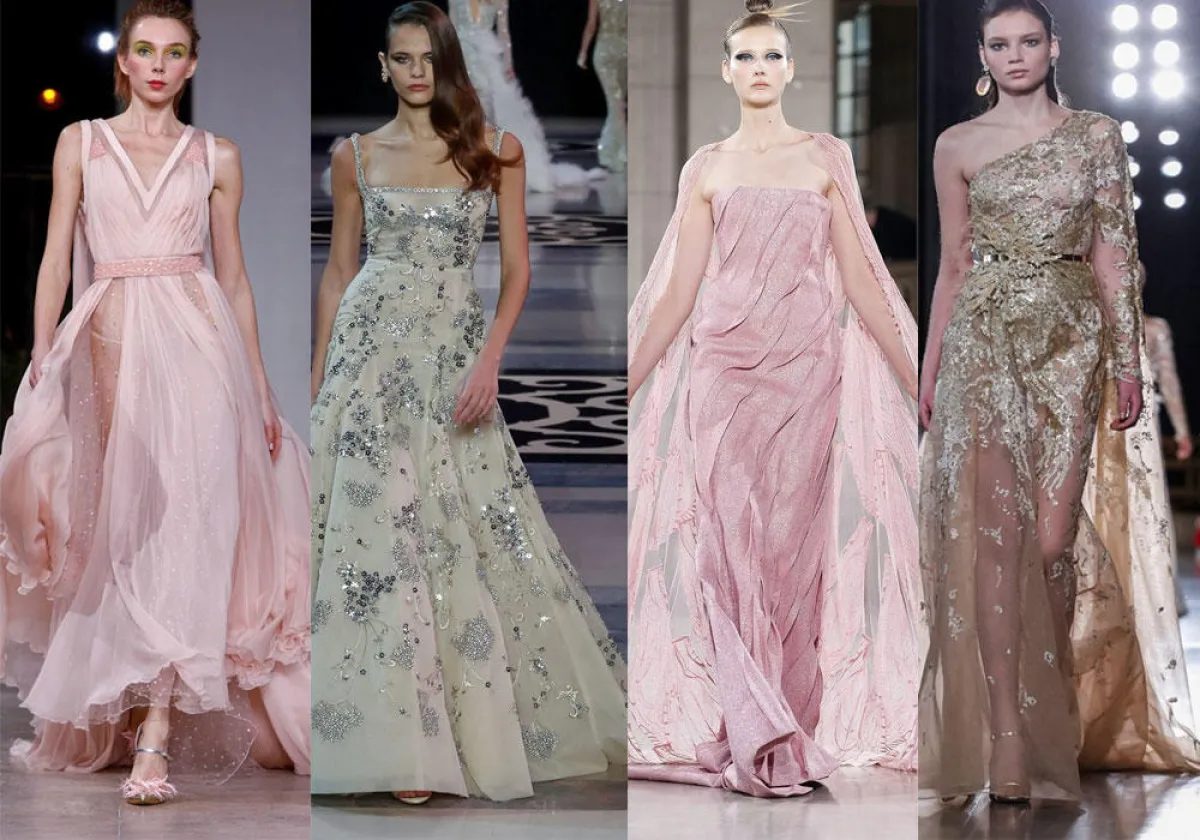 وقدمت بعض الماركات فساتين منفوشة بذيل طويل مثل فساتين المصمم اللبناني جورج حبيقة Georges Hobeika.