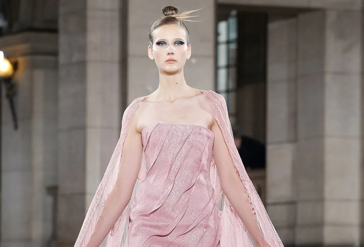كما قدم المصمم طوني ورد Tony Ward فستان وردي مزين بكاب طويل ينسدل ليلامس الأرض بتصميم راقي يلاءم ذوق المرأة العربية.