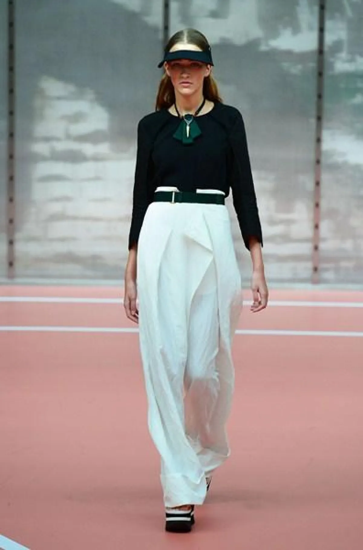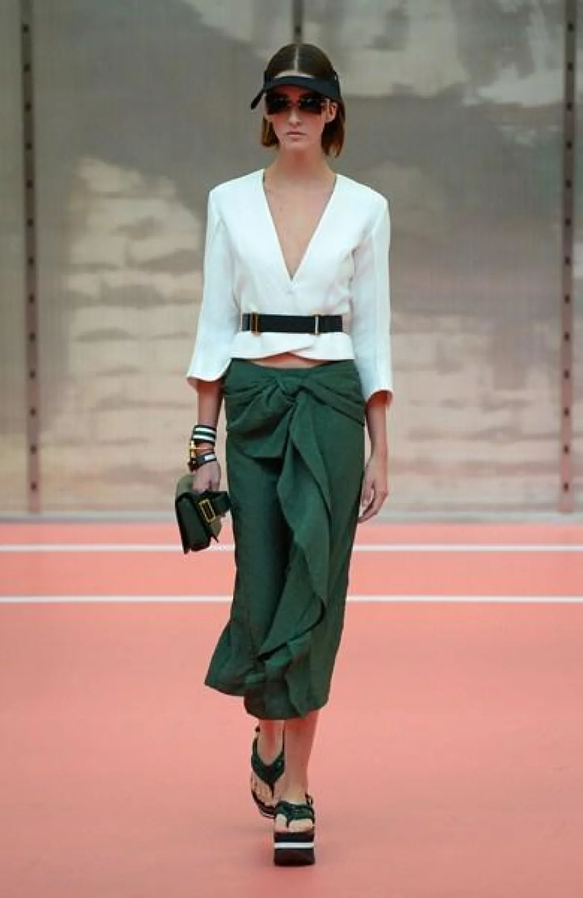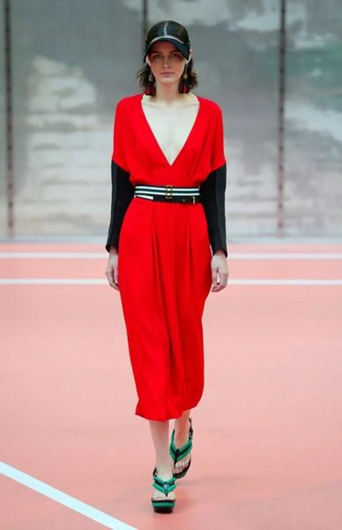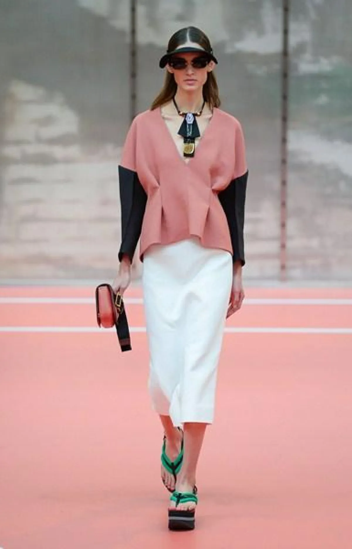 وتنوّعت مجموعة Marni ما بين الفساتين المتوسّطة الطول وموضة الكشاكش أو الـ Rufflesوالتنانير ذات القصّة الواسعة"Flared" المزيّنة بأحزمة مقلّمة، أي بموضة الـStripes.